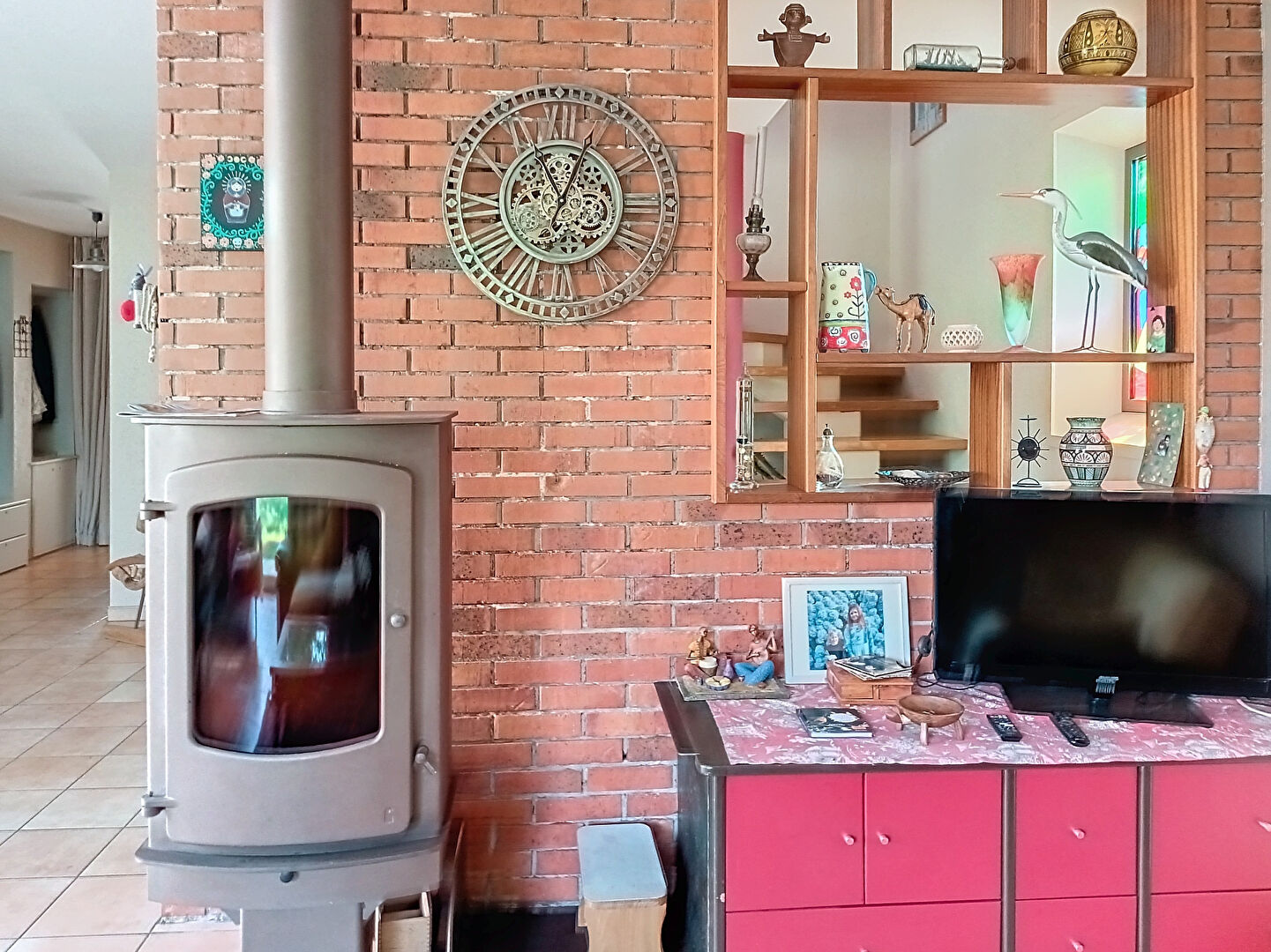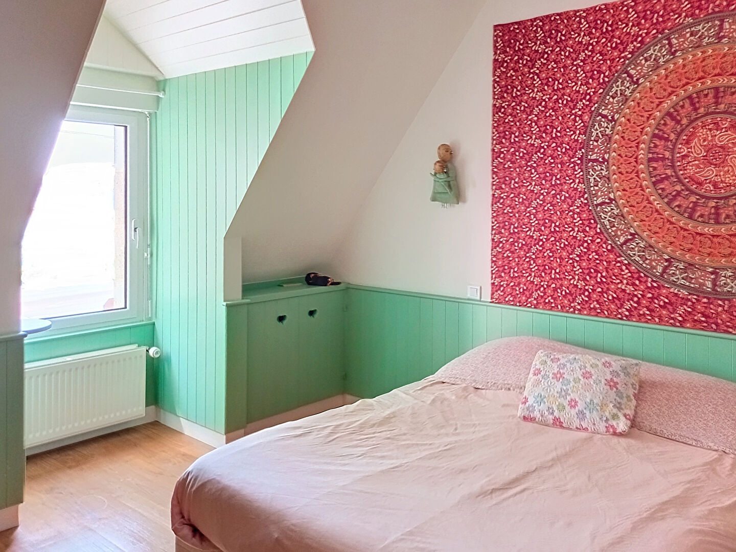 L'entrée est aménagée de placards et ouvre sur un vaste séjour-salon orienté sud avec poêle à bois sous plafond cathédrale. La cuisine-salle à manger est aménagée-équipée et profite d'une jolie vue sur le jardin. Un espace parental avec chambre et salle d'eau complètent le rez-de-chaussée.