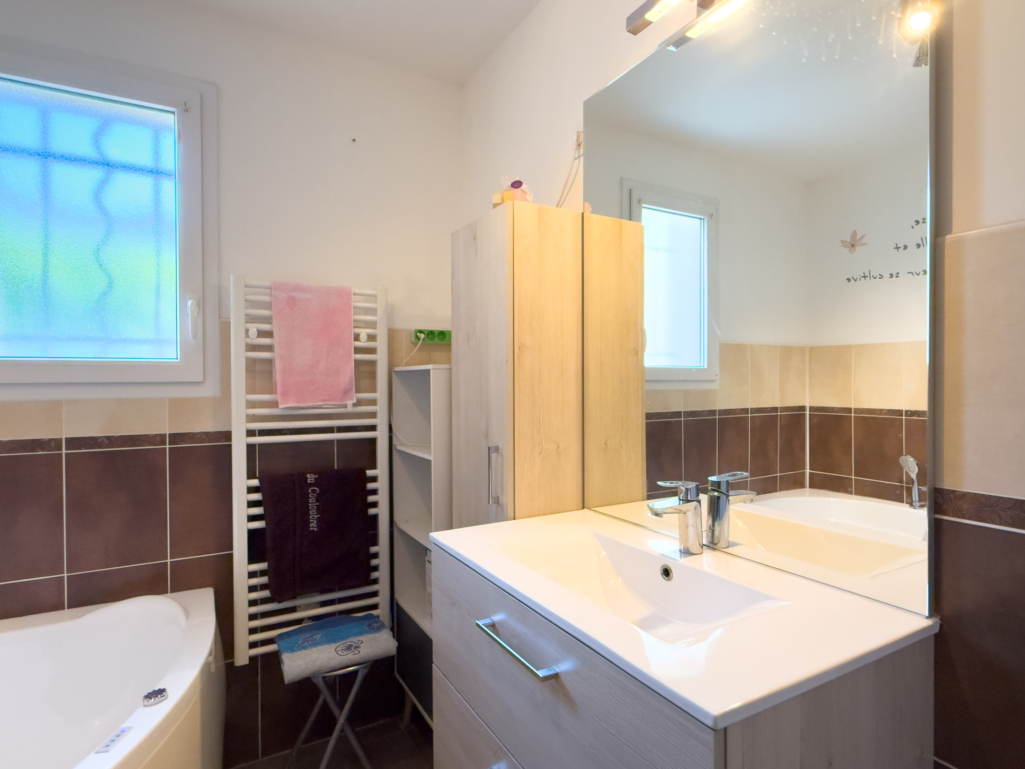 Vous découvrirez une belle pièce de vie lumineuse de 33m2 environ avec cuisine ouverte, deux chambres de 10m2 environ avec placard, ainsi qu'une salle de bains équipée d'une douche et d'une baignoire d'angle balnéothérapie.