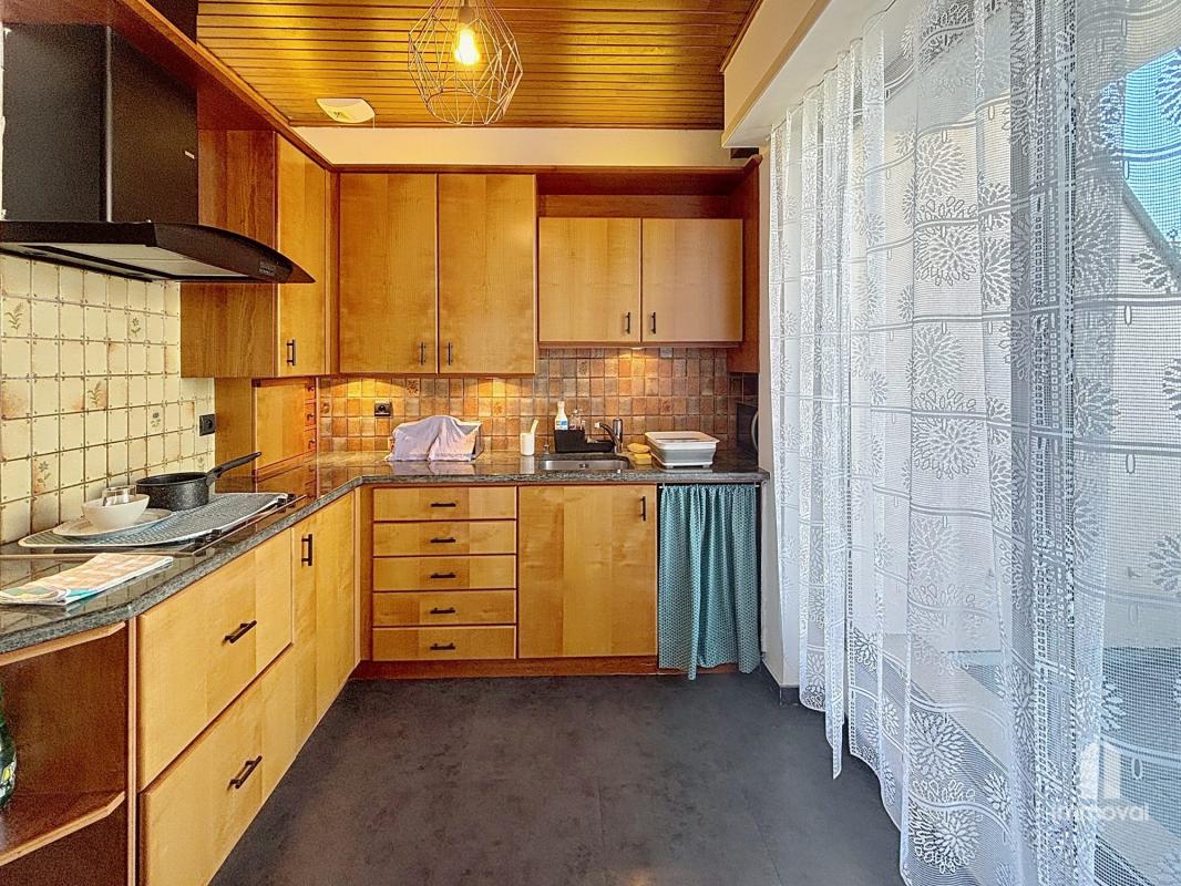 Un séjour avec balcon de 5.60m2 orienté Ouest, deux chambres, une cuisine équipée avec balcon de 3.45m2, un débarras, une salle de bains et un WC séparé.