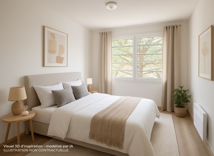 Avec une superficie de 54,45 m², ce bien en bon état dispose d'un séjour lumineux avec espace cuisine aménagé, deux chambres avec placard, une salle de bains et un wc séparé.