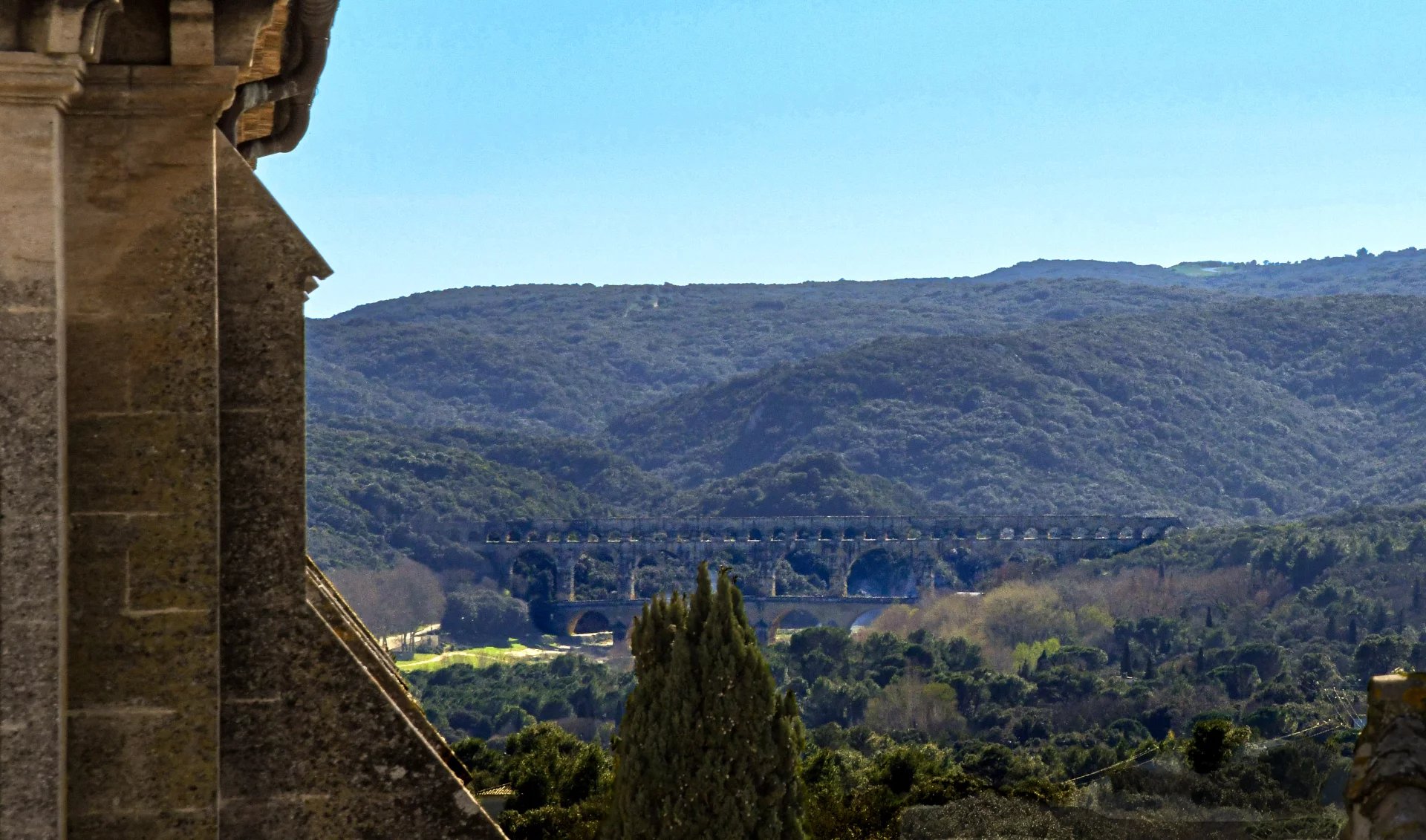 Terrasse avec vues des Alpilles aux Cévennes et le Pont du Gard
