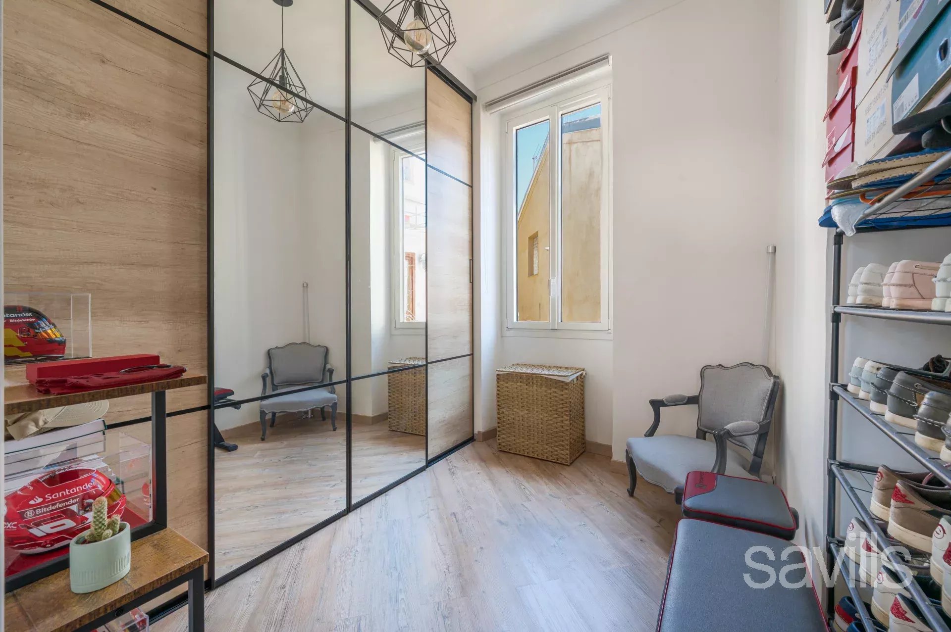 L'appartement se compose d'un spacieux séjour, d'une chambre confortable et d’une pièce supplémentaire avec fenêtre, actuellement aménagée en dressing, mais facilement transformable en bureau ou seconde chambre. La cuisine moderne, entièrement équipée, s’ouvre sur un balcon intime donnant sur une cour intérieure apaisante. La salle d’eau, avec WC séparés, ajoute une touche pratique à cet espace.