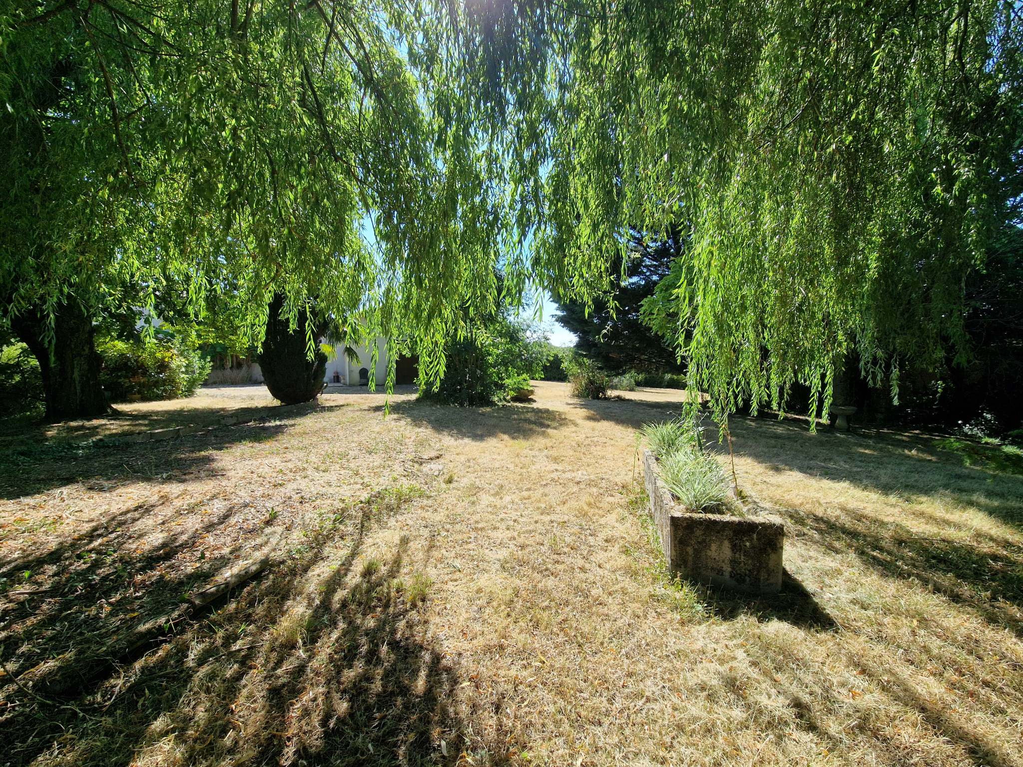 Entre BARBEZIEUX et JONZAC (16) - A 5 minutes des commodités de BAIGNES- Au calme d'un hameau, cette maison en pierre de plain-pied avec son beau jardin offre un cadre de vie très agréable. Bien que rénovée dans les années 90, elle a été parfaitement entretenue, c'est habitable en l'état. Entrée, salon lumineux, vaste pièce de vie avec cuisine et cheminée, arrière-cuisine, salle d'eau et trois belles chambres. Garage attenant de 38 m2. Chauffage central par pompe à chaleur récente. La bâtisse mitoyenne sur un côté, sans vis à vis et sans nuisance profite d'un beau terrain arboré d'environ 2.600 m2. Puits. Hangar indépendant à rénover. Des travaux de mise au goût du jour et d'assainissement sont à prévoir.