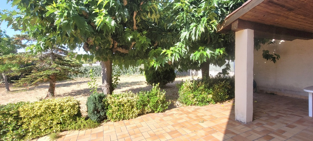 Beau terrain piscinable, clôturé et arboré, terrasse de 70m2 sur 3 faces comprenant une partie couverte et grande aire de stationnement sur la propriété (camping car....)