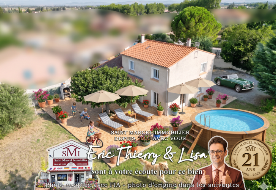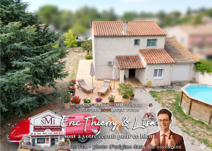 No4545 : Villa R+1, 3 faces située au calme dans le village de Saint Marcel sur Aude, hors zone inondable et hors lotissement, proche de toutes commodités (commerces, école primaire, collège, cabinet médical...).