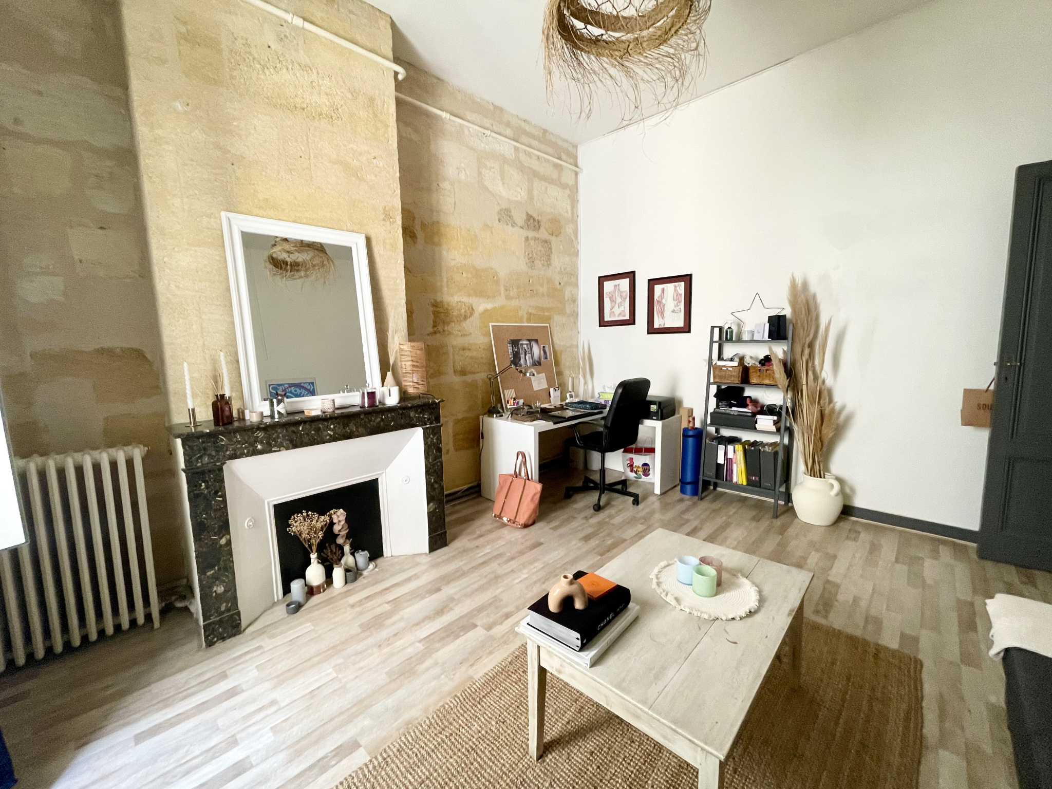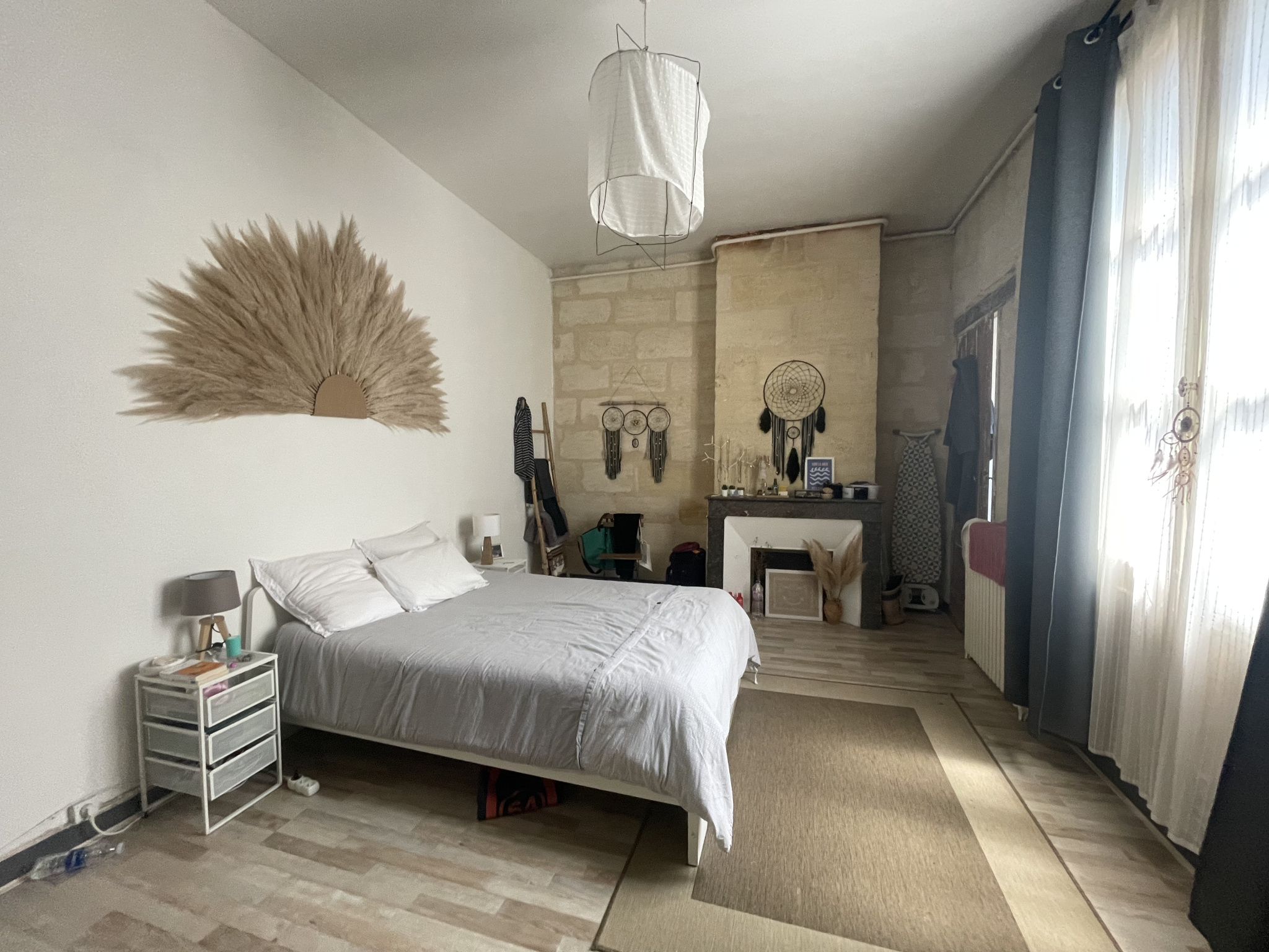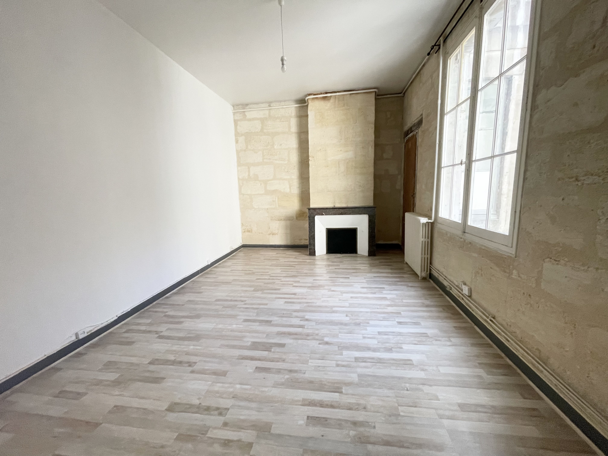 Idéalement situé au 2ème étage d'un immeuble en pierre, dans une petite copropriété de 7 lots d'habitation et à seulement 5 minutes de la gare et des Capucins, découvrez cet appartement spacieux de type T2 d'une surface de plus de 72 m2. Il se compose d'une vaste entrée permettant d'aménager de nombreux rangements, de WC indépendants et d'une grande chambre de près de 21 m2 avec pierres apparentes et cheminée d'époque. Cette chambre dispose de sa propre salle d'eau attenante offrant ainsi un véritable espace nuit confortable. La cuisine indépendante possède un double accès tandis que le salon constitue un espace de vie agréable et chaleureux avec pierres apparentes, belle hauteur sous plafond et cheminée ancienne décorative. Vous avez également la possibilité de faire une ouverture entre la cuisine et le salon afin d'obtenir une grande pièce de vie. Des travaux de rénovation vous permettront d'optimiser cet appartement aux volumes généreux et d'en faire un véritable lieu de vie citadine dans un quartier recherché de Bordeaux, situé en face du Lycée Gustave Eiffel.