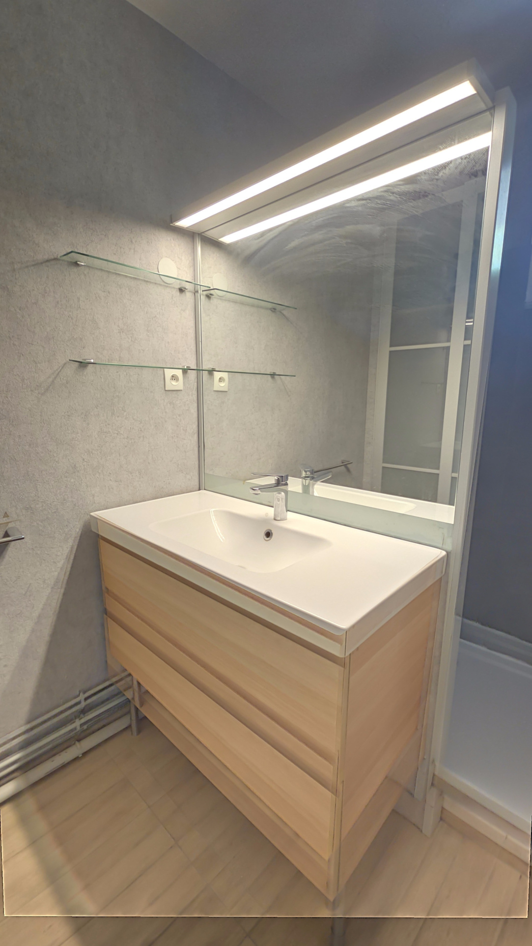 Une salle d'eau moderne avec douche à l'italienne et dressing