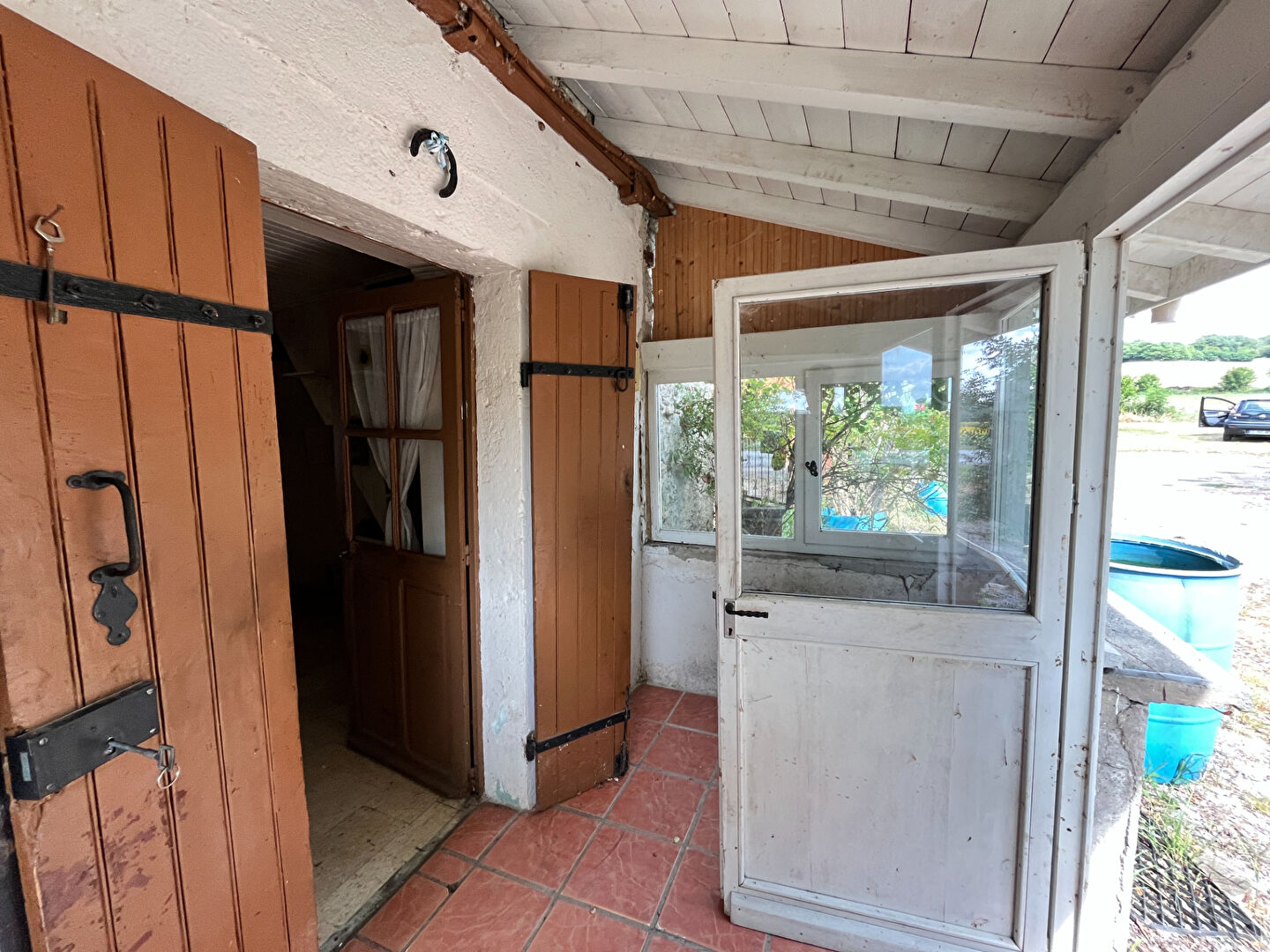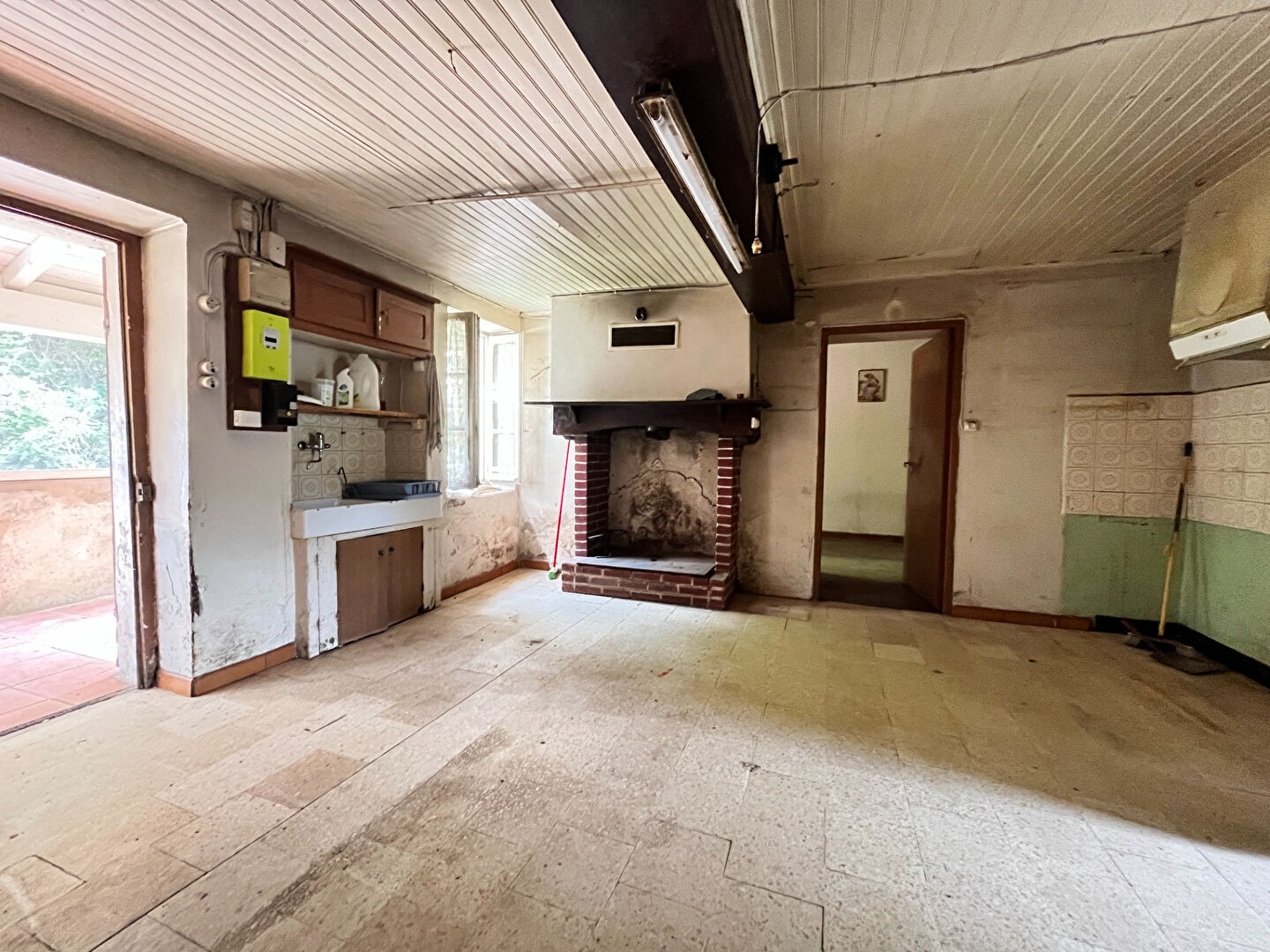Maison en pierre de plain-pied offrant un fort potentiel, comprenant une petite véranda, une cuisine simple, un salon, deux chambres, une salle de bains, des WC séparés ainsi qu'une pièce supplémentaire à aménager selon vos besoins.