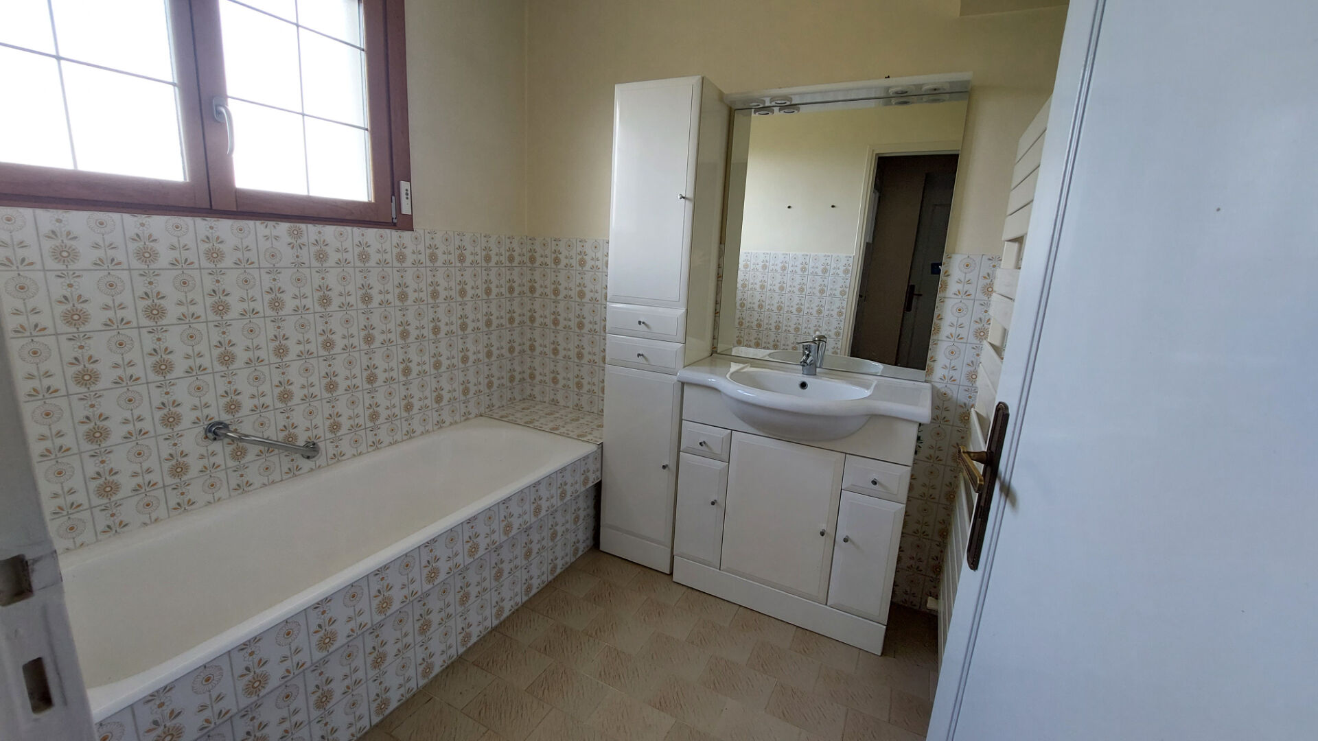 -Au rez-de-chaussée: Entrée, cuisine aménagée ( 11m²), salon-séjour avec cheminée insert (25m²) avec possibilité de l'agrandir, trois grandes chambres (13m², 10m² et 9m²), wc, salle de bains