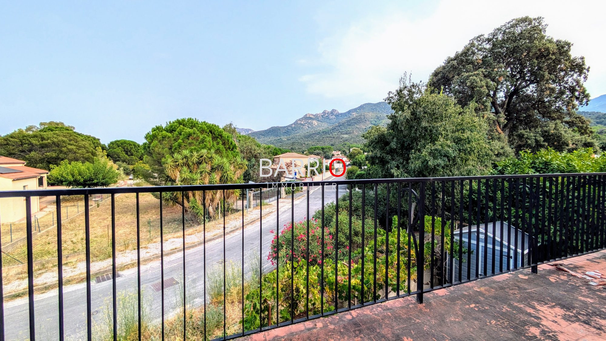 À l'étage, une vaste pièce à vivre baignée de lumière profite d'une vue imprenable sur les Albères grâce à deux baies vitrées ouvrant sur un grand balcon. Deux chambres, une salle d'eau et un wc séparé complètent cet espace convivial.