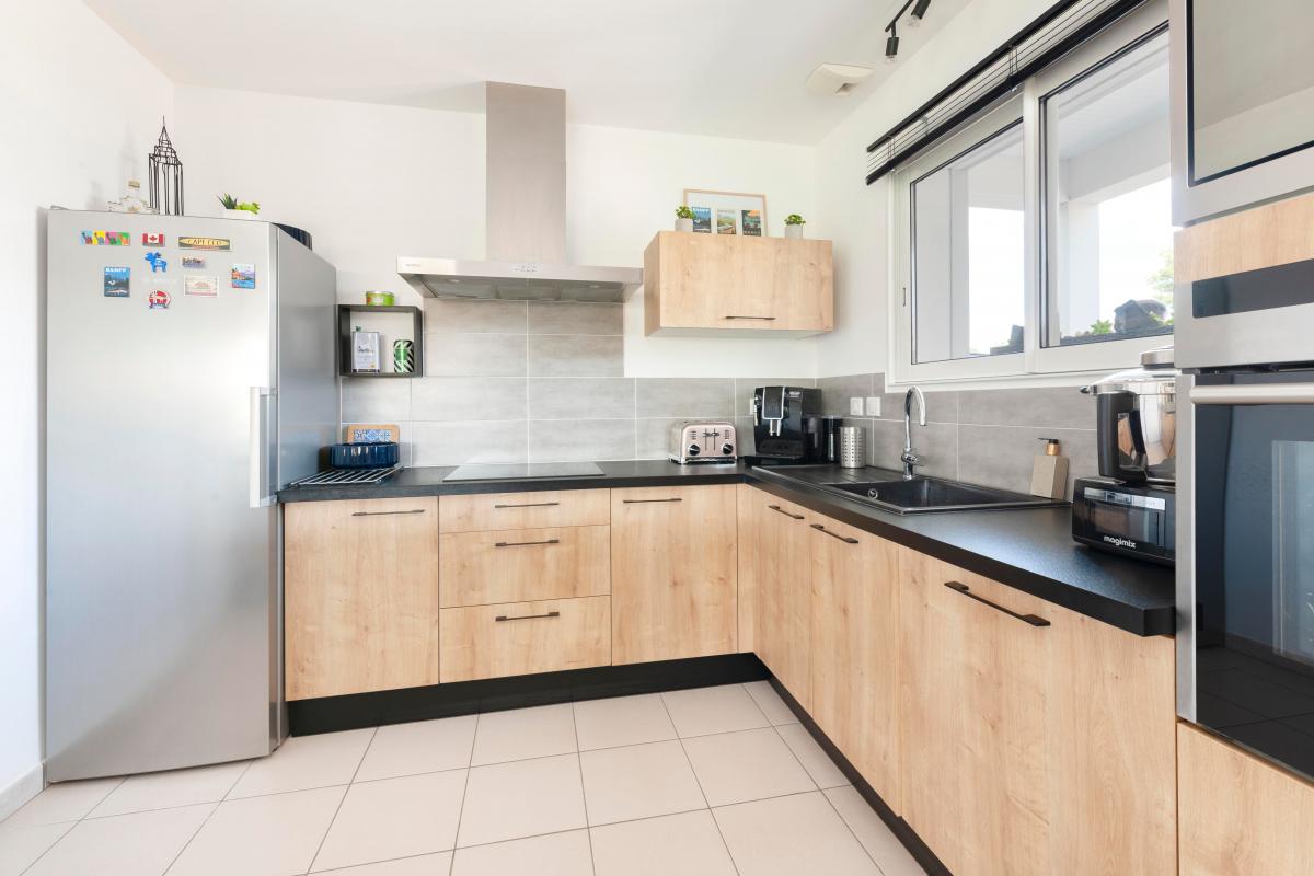 Une cuisine aménagée et équipée ouverte sur un salon lumineux, ses 4 chambres spacieuses dont une avec salle d'eau.
