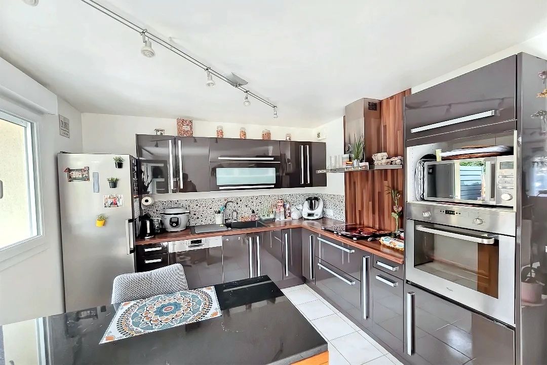 Sannerville : coup de coeur pour cette maison récente en parfait état à proximité des commerces. Elle est composée d'un séjour avec poêle à bois, cuisine aménagée et équipée américaine, 3 chambres, salle de bains le tout en parfait état. Garage. Terrain clos arboré avec terrasse et pergola.