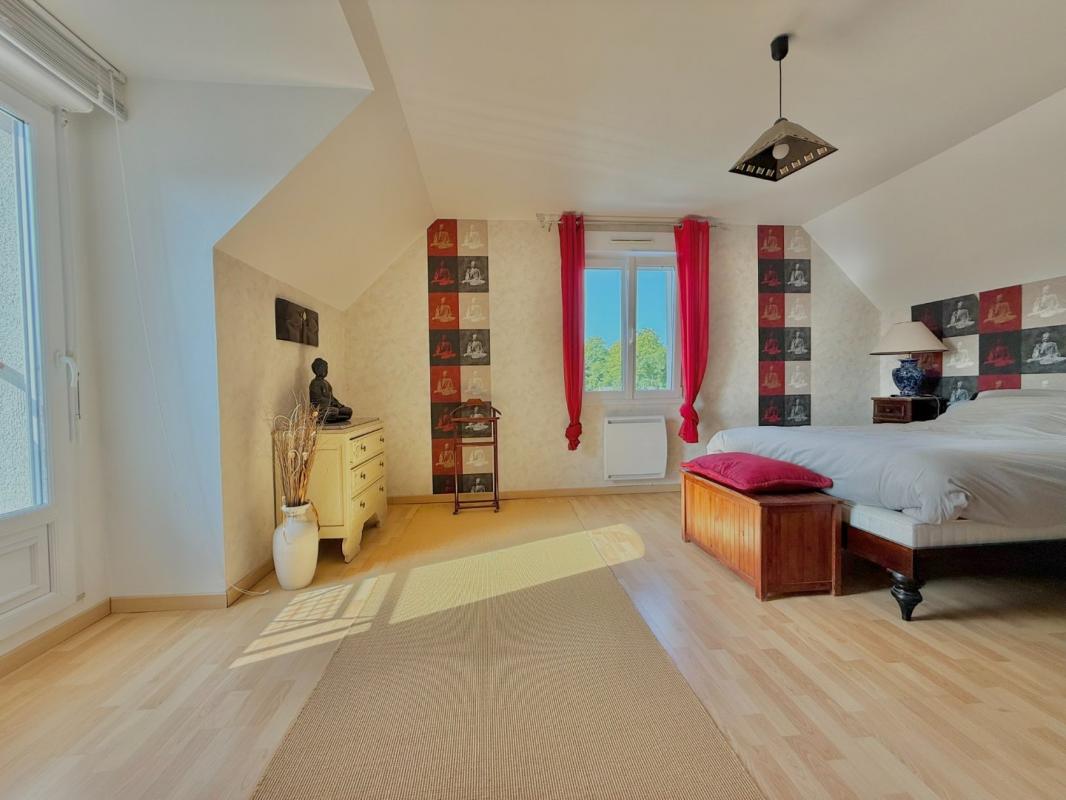 Elle se compose au rez-de-chaussée d'une entrée avec vestiaire, d'un salon / séjour de 48 m² donnant accès à la terrasse et à la véranda exposées SUD et OUEST, d'une cuisine ouverte, d'un grand cellier, d'un WC et d'une belle suite parentale d'env. 30m² avec salle de bains et dressing.