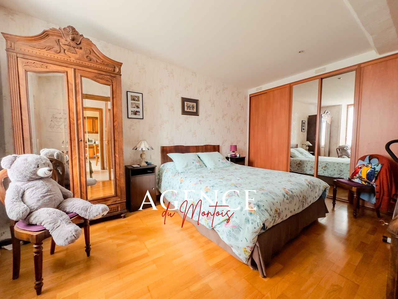 à l'étage : pièce palière, 3 chambres, salle de bains, wc,