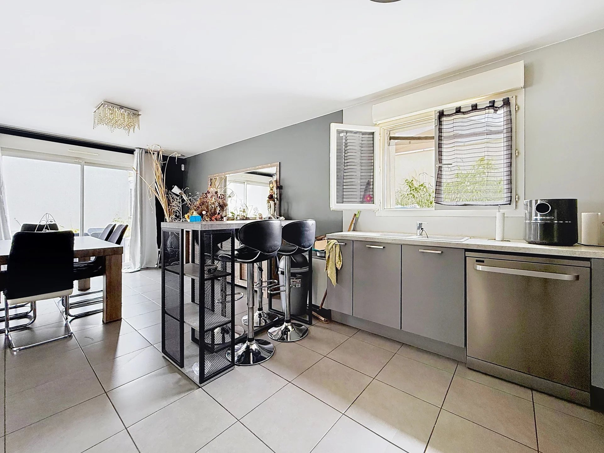 Dès l’entrée, vous serez séduit par une spacieuse pièce de vie baignée de lumière, où la cuisine ouverte s’harmonise parfaitement avec le séjour, créant un espace convivial et chaleureux.