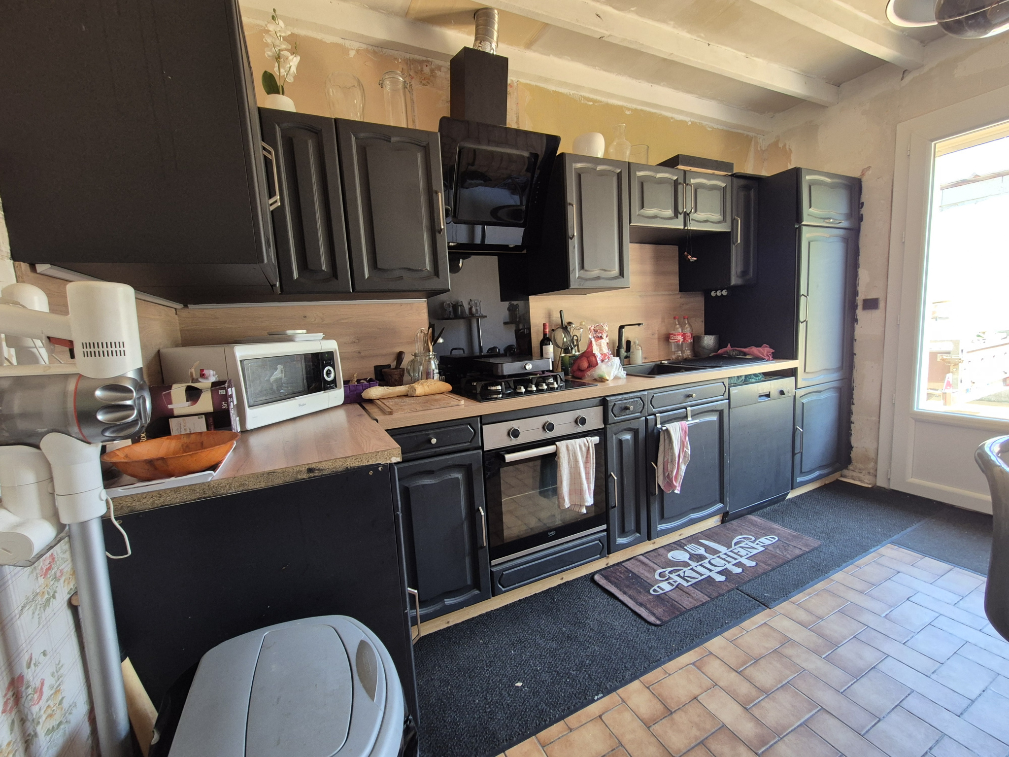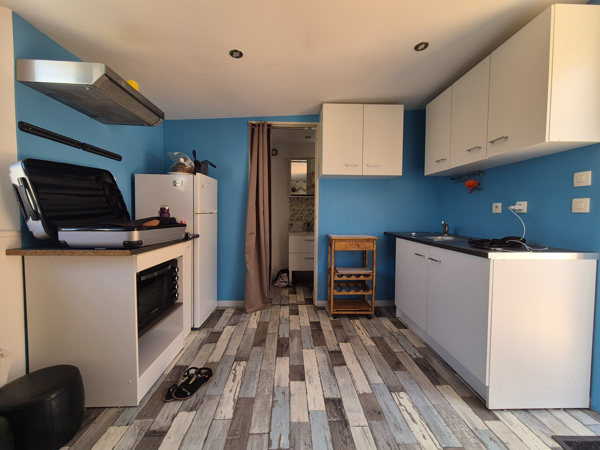 Maison offrant le confort de plain pied avec une entrée, séjour, cuisine aménagée et équipée, deux chambres, salle d'eau, WC. Chauffage électrique. Le tout sur 800m2 de jardin clos avec un garage, une dépendance et un studio aménagée avec séjour/chambre, coin cuisine, salle d'eau et WC. Travaux de structure à prévoir.