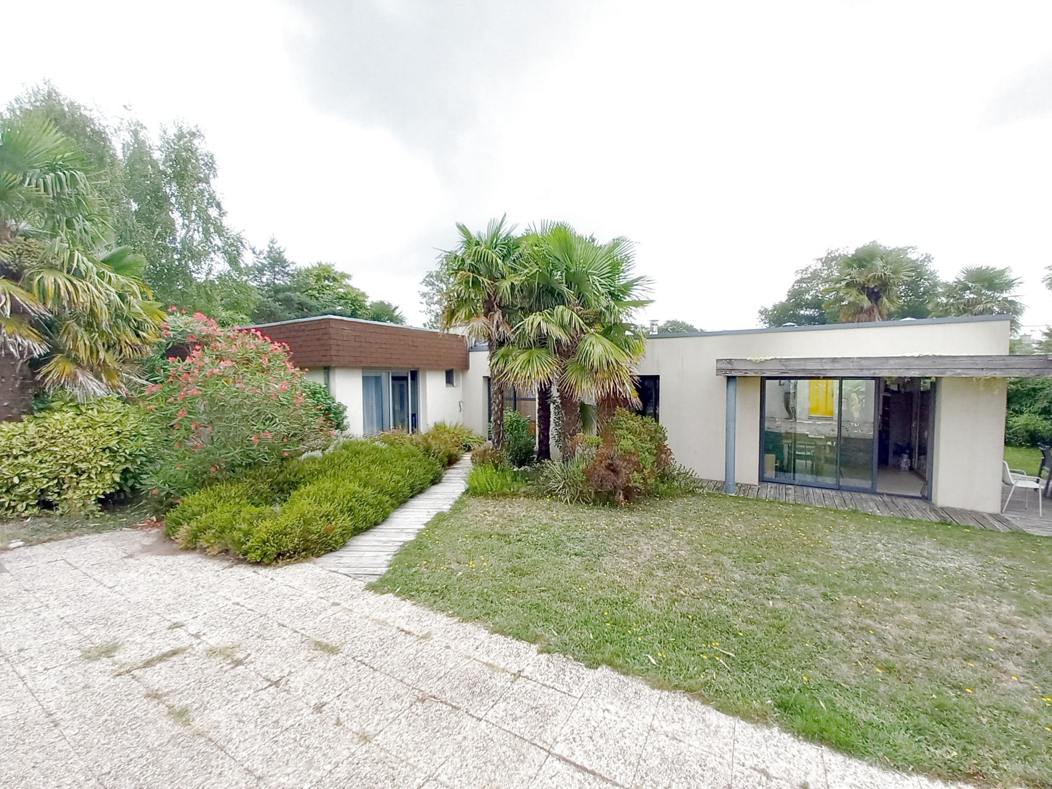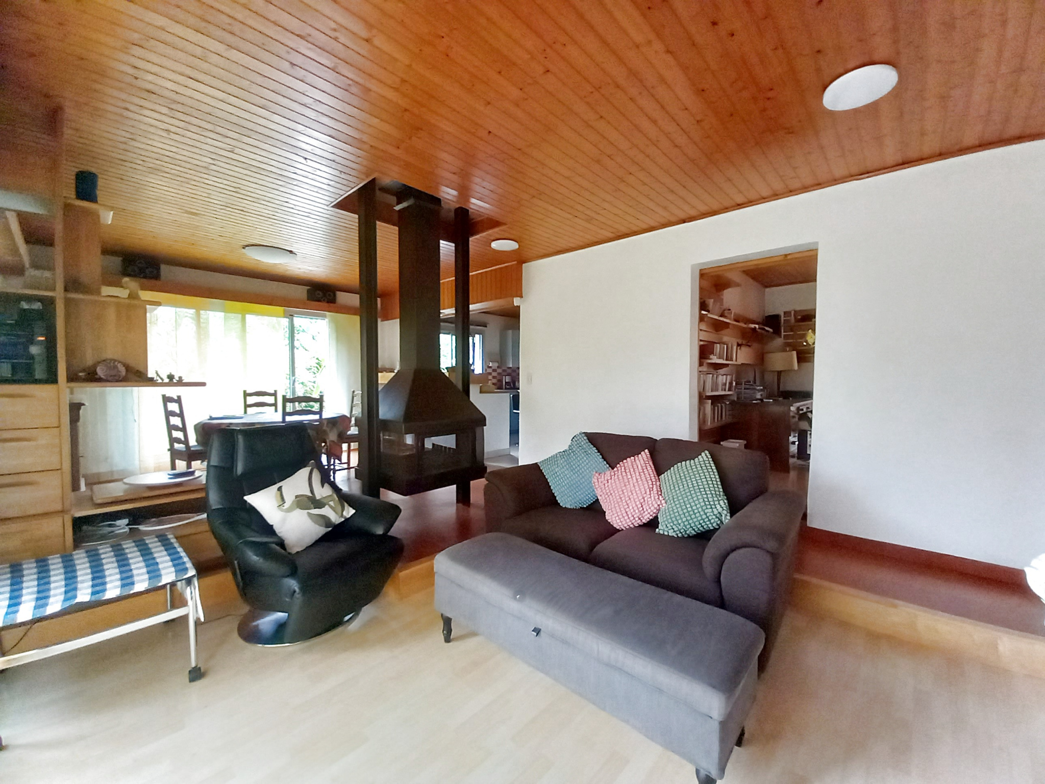 Cette maison d'architecte de 177 m2 entièrement de plain pied vous séduira pour son agencement intérieur atypique et un jardin clos, arboré, et sans vis à vis, proche du bourg. Au rez-de-chaussée, une entrée avec vestiaire, un séjour salle à manger avec cheminée centrale, une cuisine ouverte, une arrière cuisine, un bureau, une seconde vaste pièce de vie très lumineuse grace à ses nombreuses ouvertures et triple exposition, une buanderie, des toilettes, trois chambres et une salle d'eau. Egalement deux terrasses, un double garage, et des dépendances pour stocker... Coup de coeur pour le jardin de 1800 m2 et sa végétation !