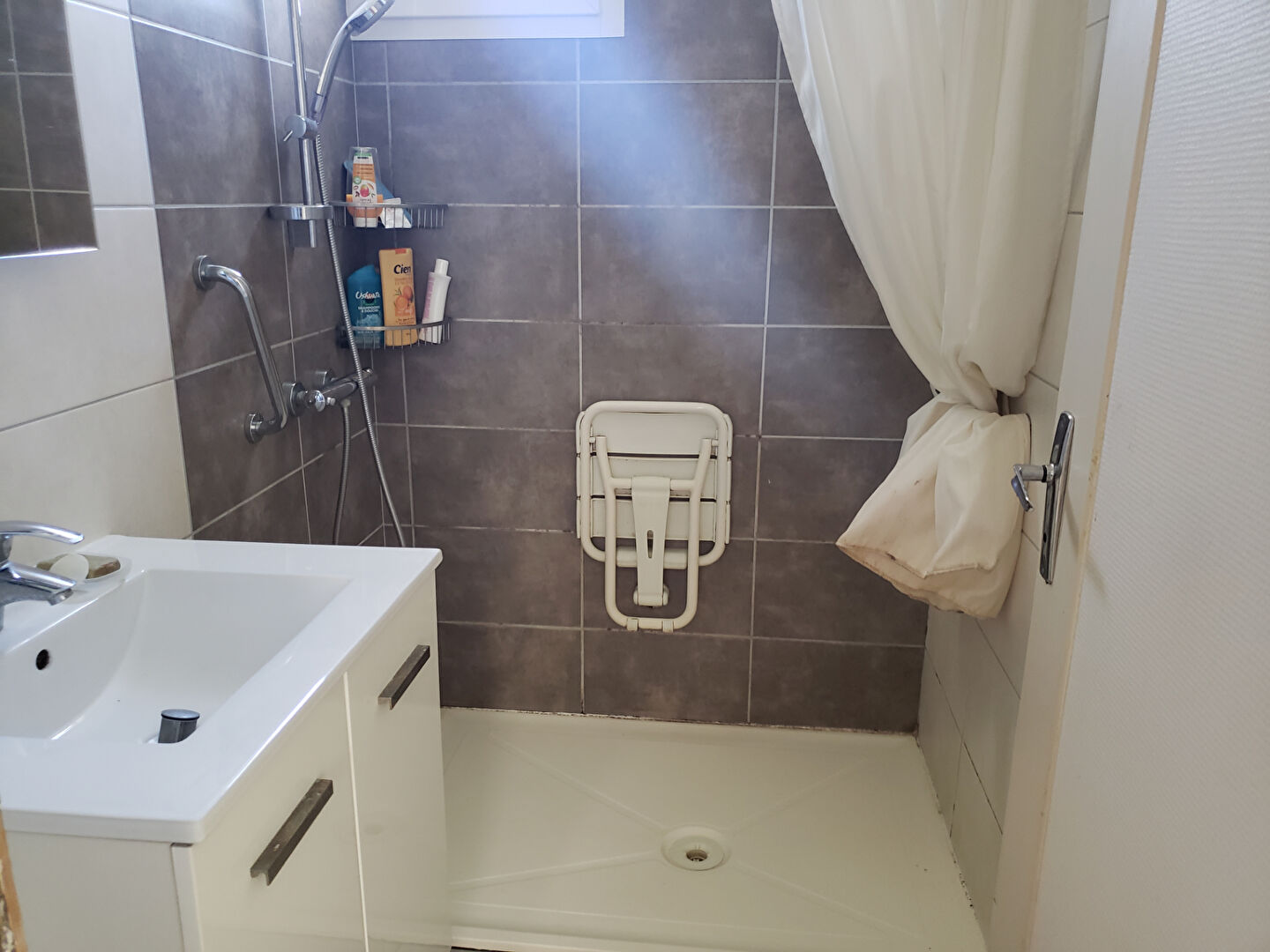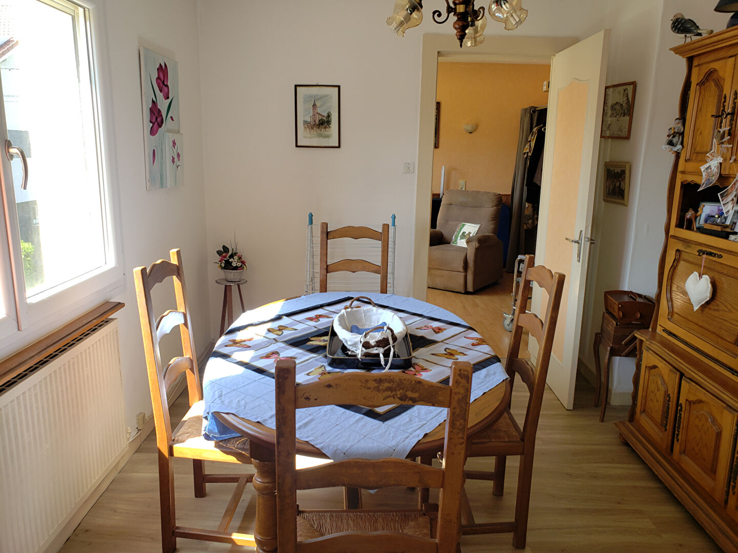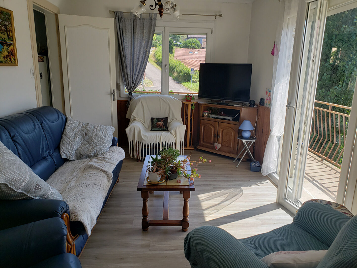 - A L'ETAGE : CUISINE MEUBLEE EQUIPEE, SEJOUR DOUBLE lumineux avec accès balcon, 2 CHAMBRES, salle d'eau et WC,