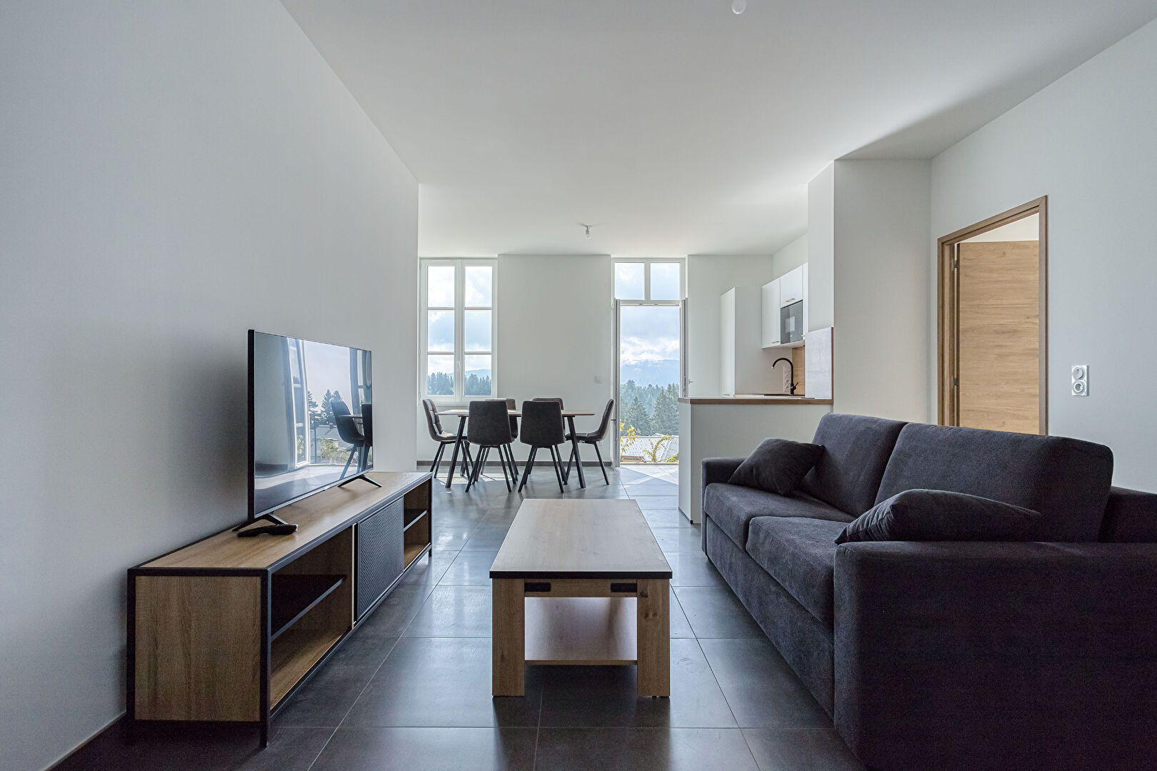 Niché dans le cadre exceptionnel du Revard Station, à 1500m d'altitude, dans l'emblématique "Chalet Bouvard", avec vue sur les massifs environnants et le Mont Blanc, Appartement de type 3 juste livré dans une petite copropriété de 15 lots d'habitation seulement. Il est composé d'une entrée sur vaste espace cuisine aménagée-équipée-séjour de 40m², et accès à une grande terrasse privative de 42m² exposée plein Sud. Chambre, coin montagne (bureau ou chambre d'appoint), cellier et salle d'eau-wc pour compléter la prestation. Le logement est également vendu avec une cave et un garage. Belle prestation.