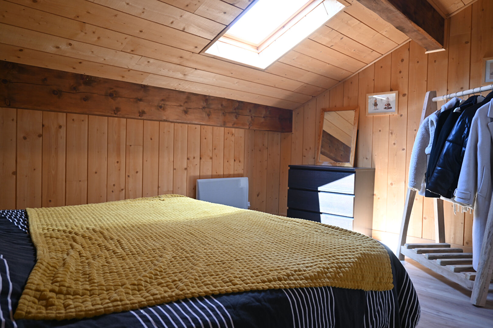 Garage permettant le stationnement pour 1 véhicule et espace atelier.