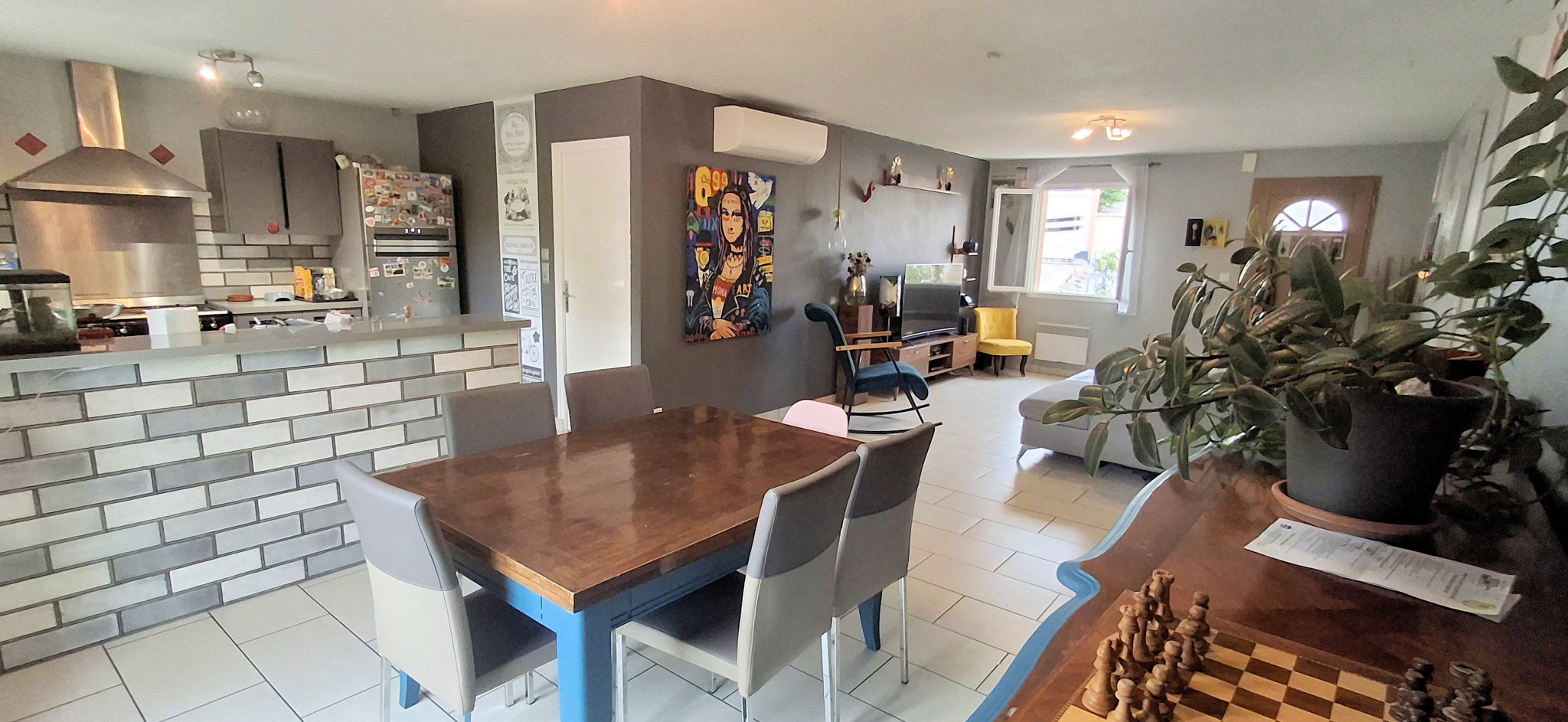 Cette maison de construction traditionnelle est équipée de double vitrage PVC, volets bois, climatisation réversible Daikin 2019, radiateurs électriques, ballon d'eau chaude intelligent Thermor 2025.