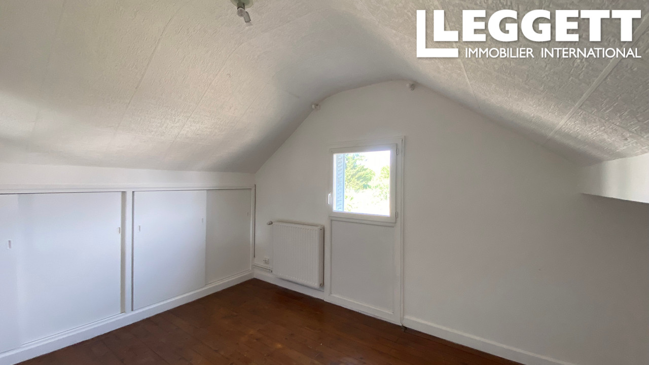 En entrant dans le jardin, un petit escalier mène à l'entrée et au hall d'entrée. À gauche, un grand salon de 20 m², à droite, une cuisine séparée, à l'avant, une chambre à l'arrière avec salle d'eau et escalier menant à l'étage et WC au rez-de-chaussée. À l'étage, deux belles chambres mansardées avec rangements sous les combles.