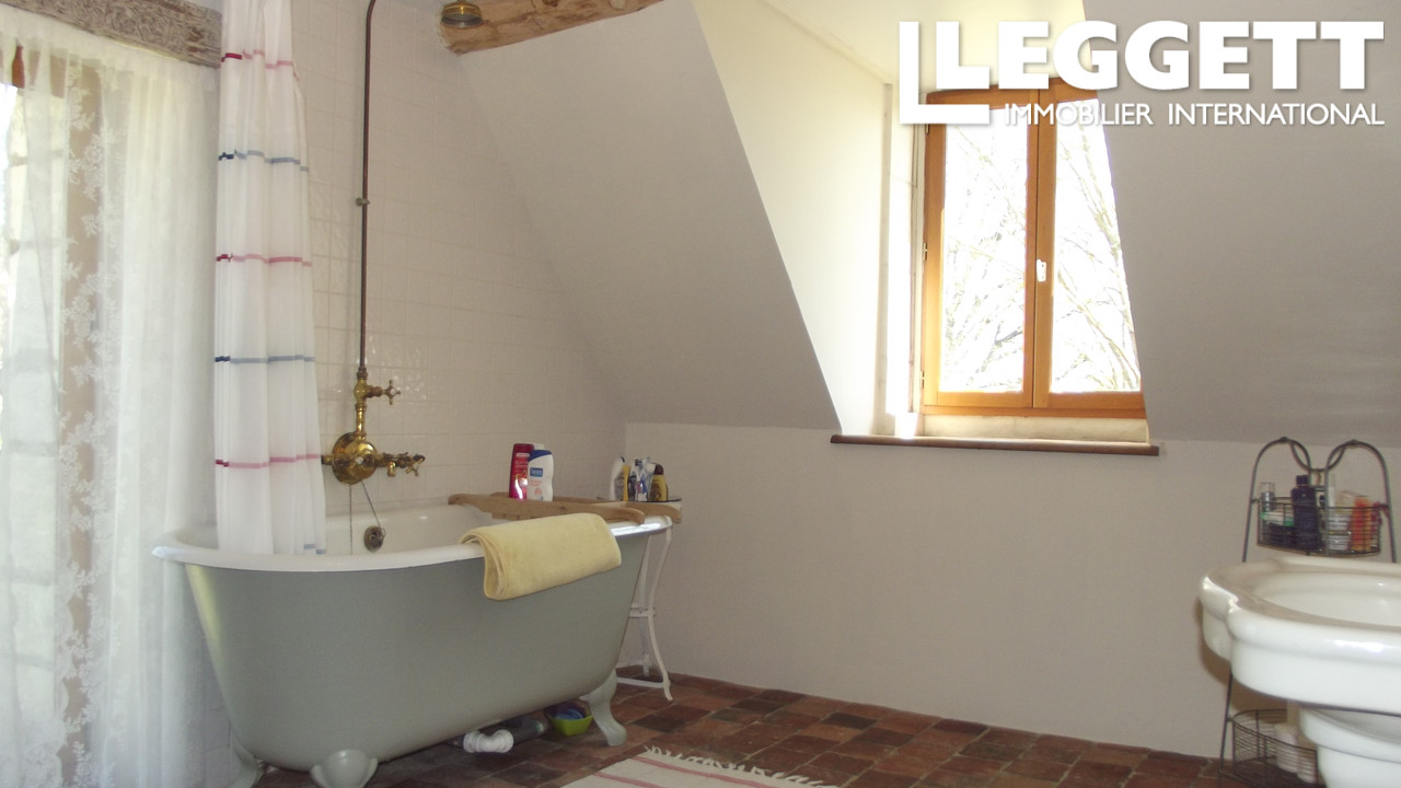 A38667AF86 - Maison d'habitation comprenant au RDC: entrée/cuisine (21m2) et salon (27m2). 1er: chambre (24m2) et salle de bains (12m2). Maison d'amis comprenant au RDC: salle de bain (4m2), cuisinette (5m2) et salon (18m2). 1er: chambre et wc avec lavabo (13m2). A l'extérieur: grange, écurie, appentis, dépendance, cour entre les bâtiments, jardin, pré et puits.