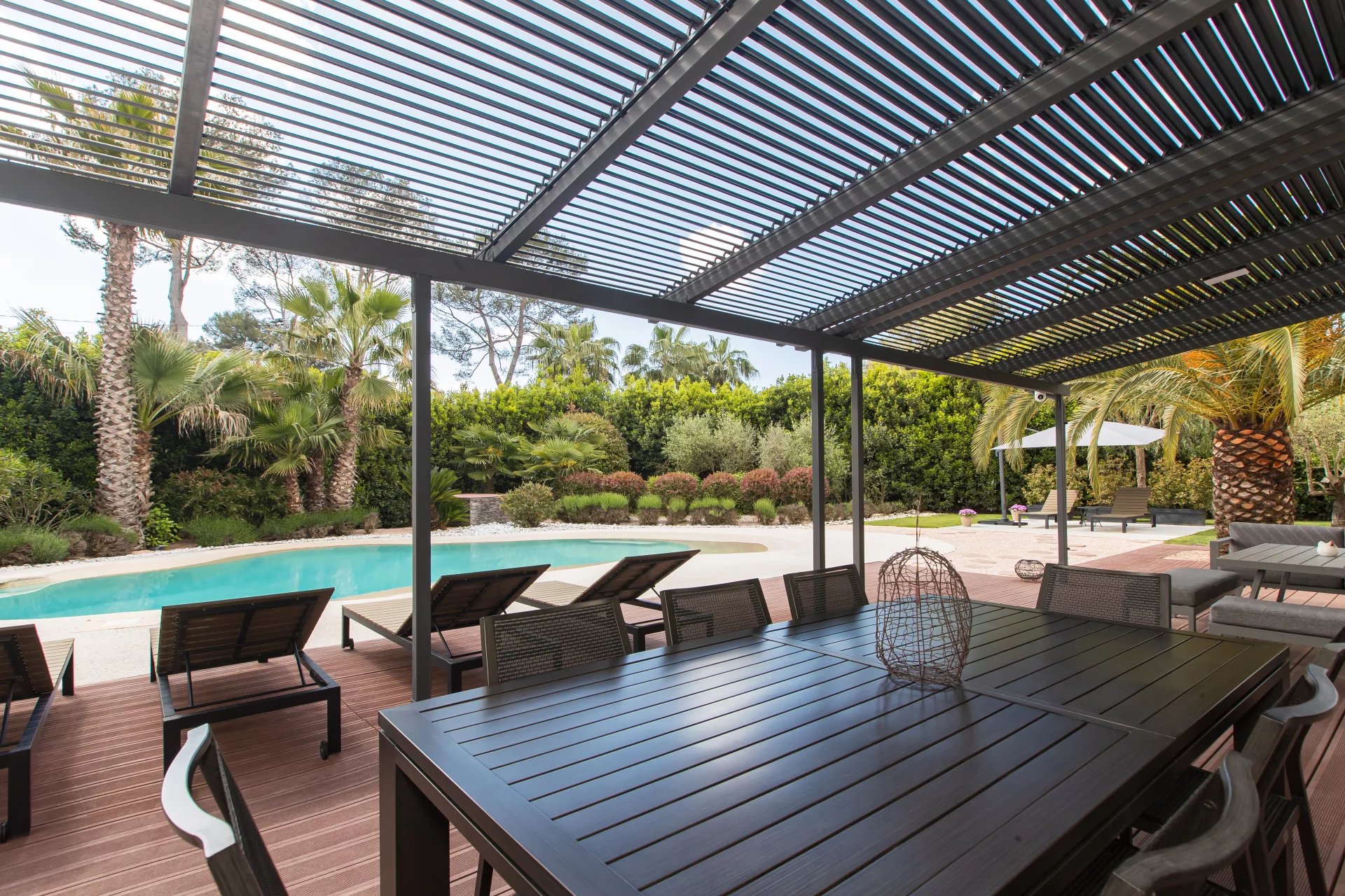 A l'extérieur, on retrouve une terrasse d'environ 145 m² équipée d'une pergola avec lames orientables, la piscine en forme de lagon entourée d'une superbe végétation luxuriante et sans vis à vis !