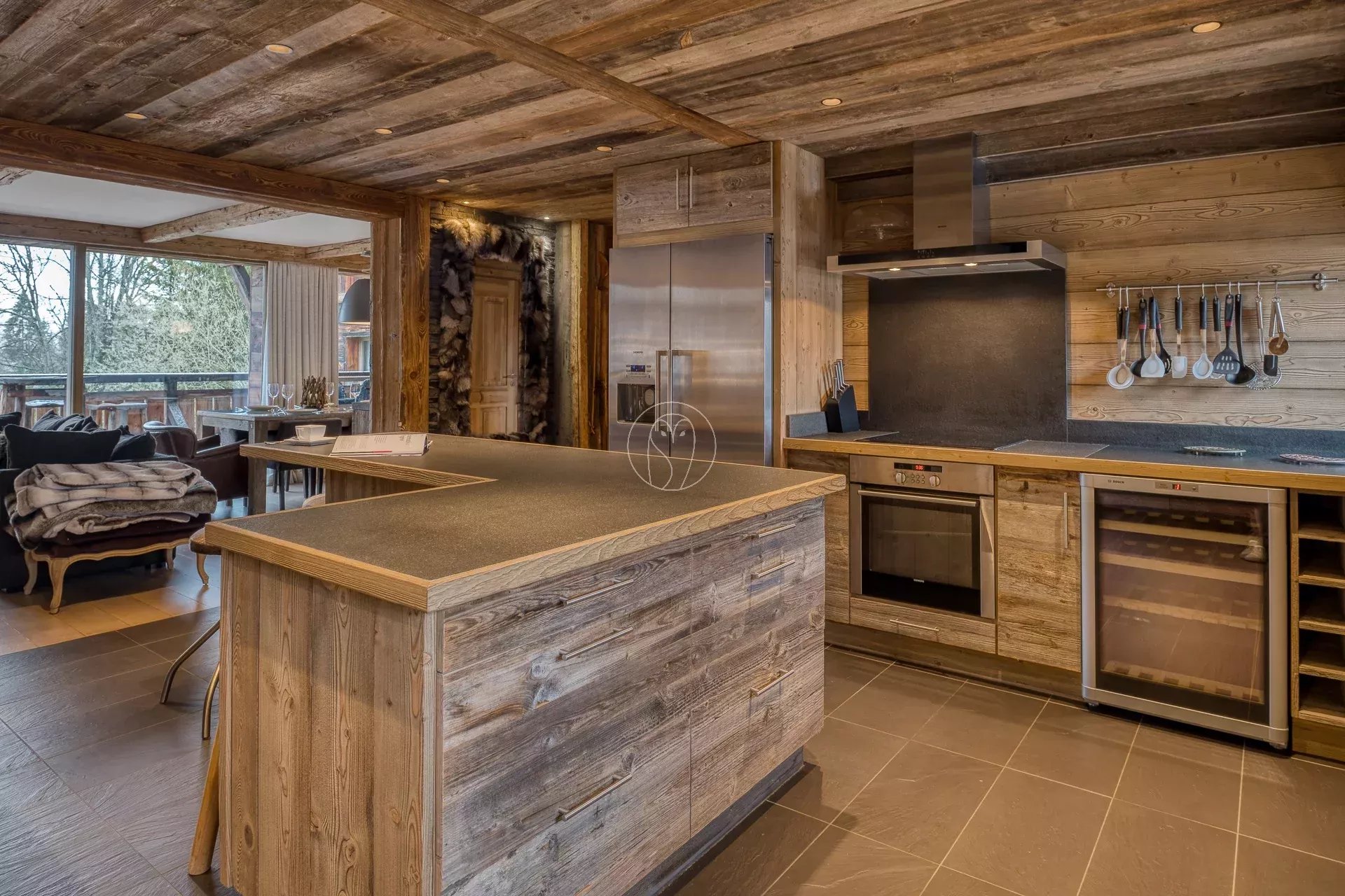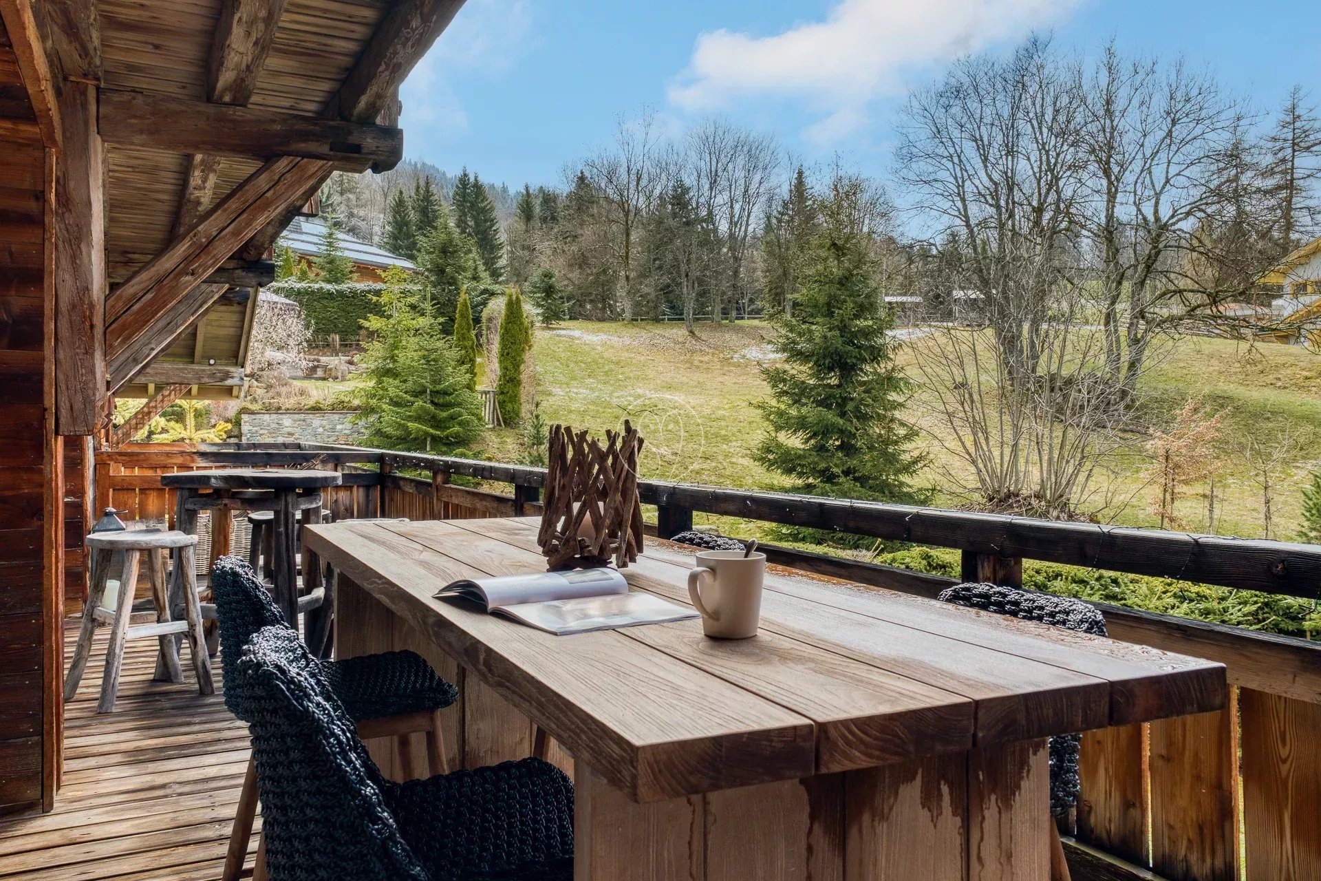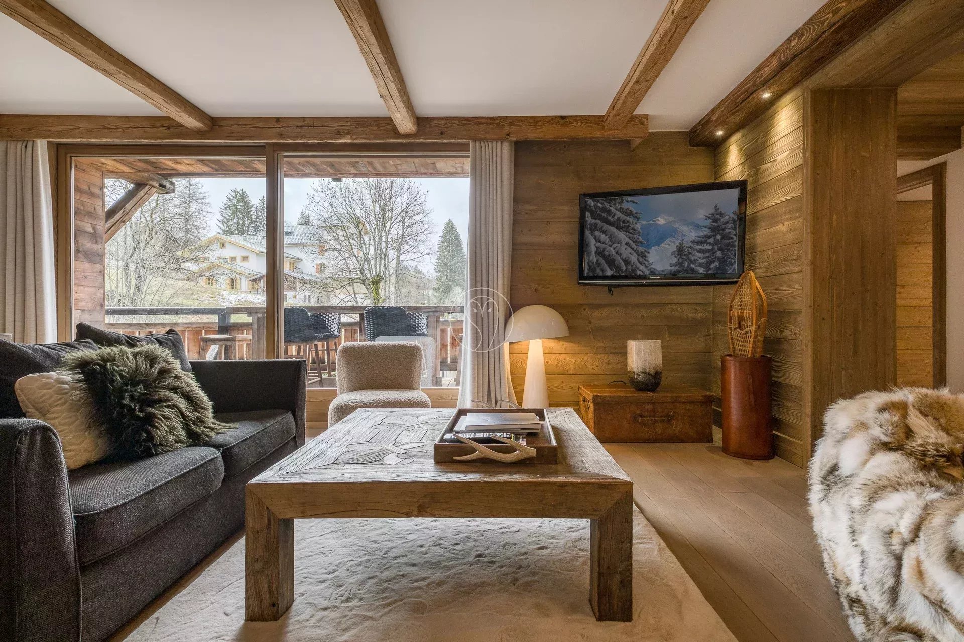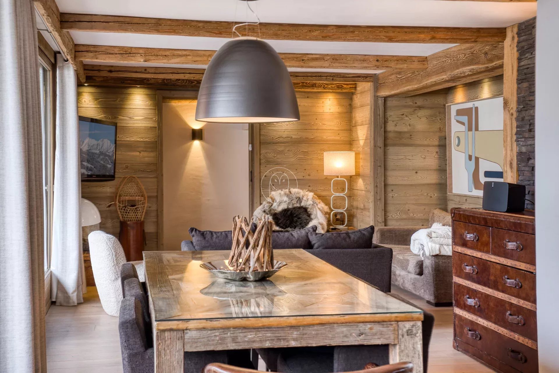 Superbe appartement de 144 m² situé à Megève, à mi-chemin entre le village et les remontées mécaniques, dans une petite copropriété au calme, de style chalet.