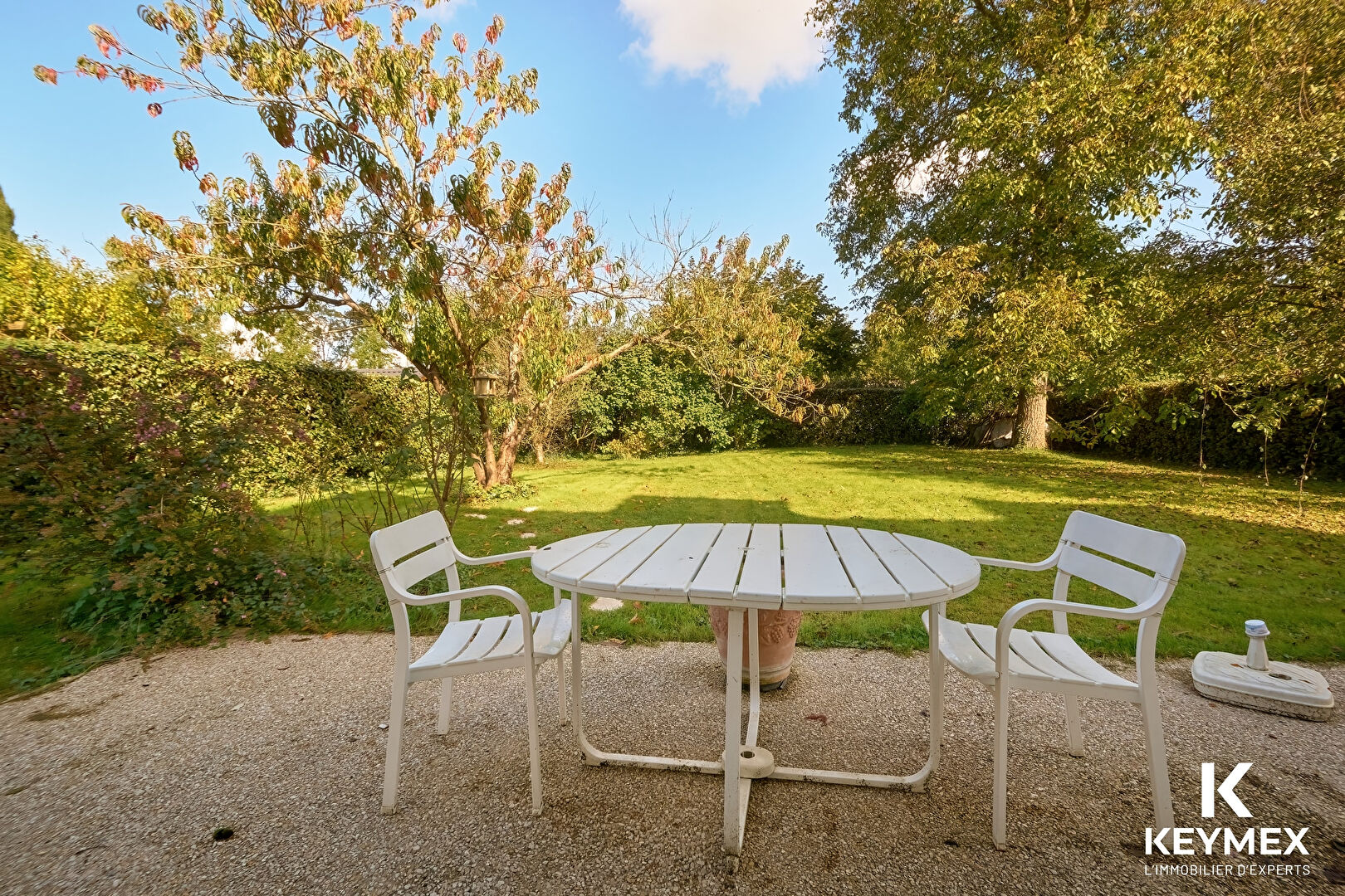 3/4 places de parking devant le garage. Un beau jardin clos , plat arborisé à l'abri des regard ou vous pourrez profitez en famille .