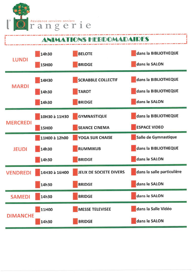 ANIMATIONS: Yoga, gym, danse douce, atelier mémoire, séance cinéma, apéritifs et goûters collectifs...