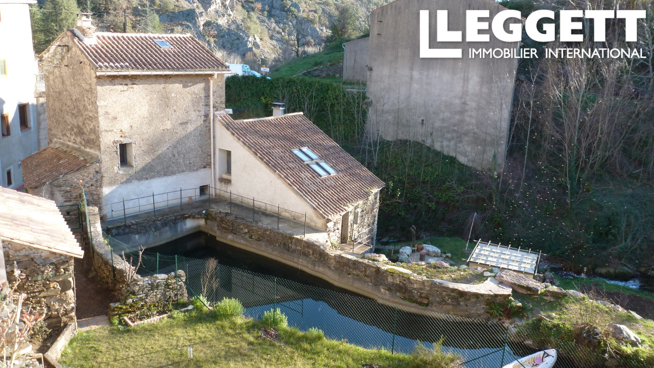 A38980LHS34 - Situé dans un village perché au-dessus de la région méditerranéenne du Minervois, à proximité des villes historiques de Carcassonne, Béziers et Narbonne, ce charmant moulin à eau pourrait toujours fonctionner. La rivière Cessière coule à proximité et alimente le canal du moulin, qui stocke l'eau dans le bassin du moulin et passe sous une partie de la maison.