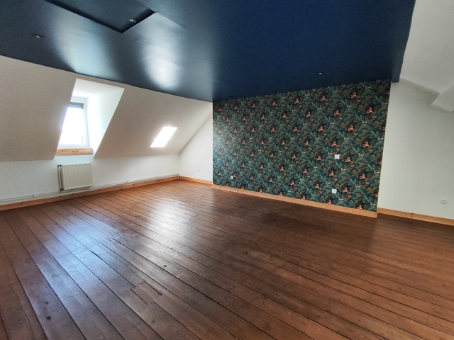 Le deuxième étage se compose d'une grande chambre de plus de 30m2 au sol pouvant être divisée en deux belles chambres ainsi qu'un accés aux combles pour du stockage.