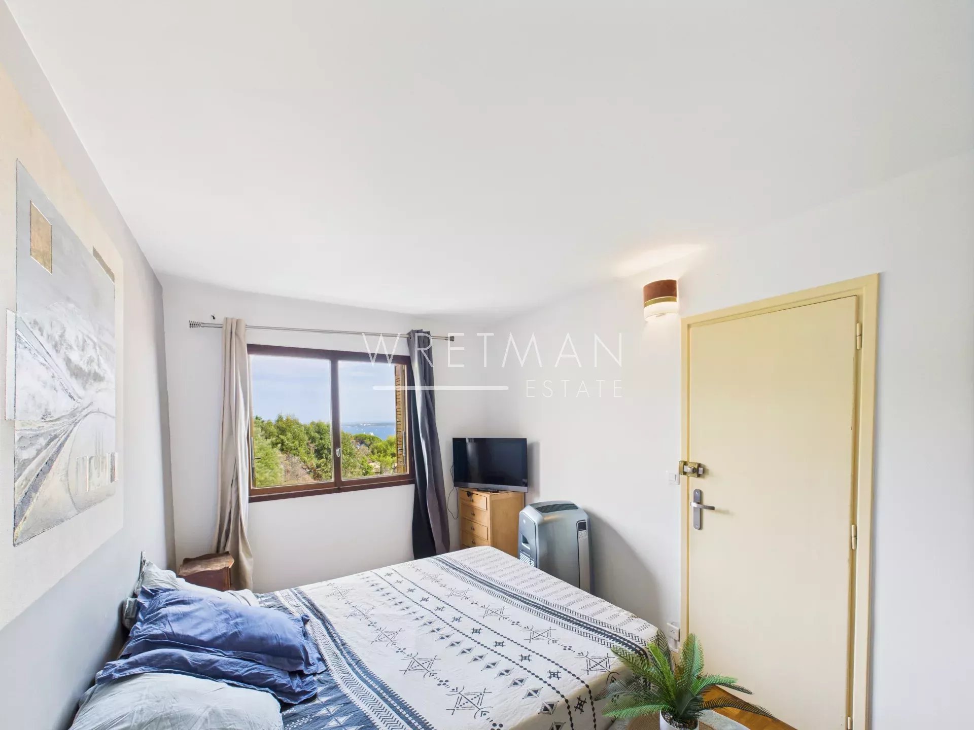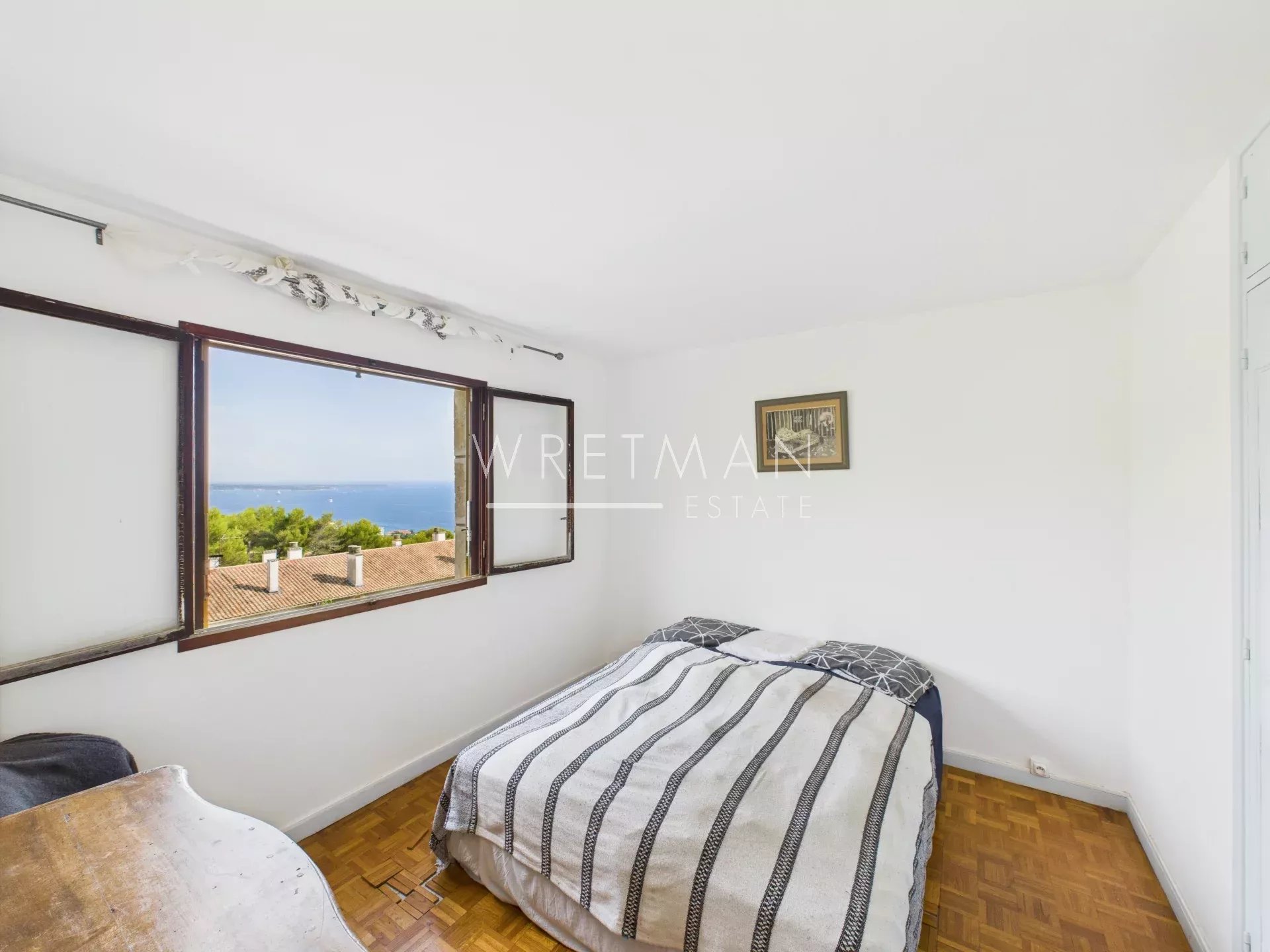 Dès l’entrée, laissez vous séduire par un vaste espace de vie baigné de lumière, où le séjour et la salle à manger s’ouvrent naturellement sur une terrasse offrant un panorama exceptionnel : une vue dégagée sur la Méditerranée et les Îles de Lérins, sublimée par un écrin de végétation verdoyante