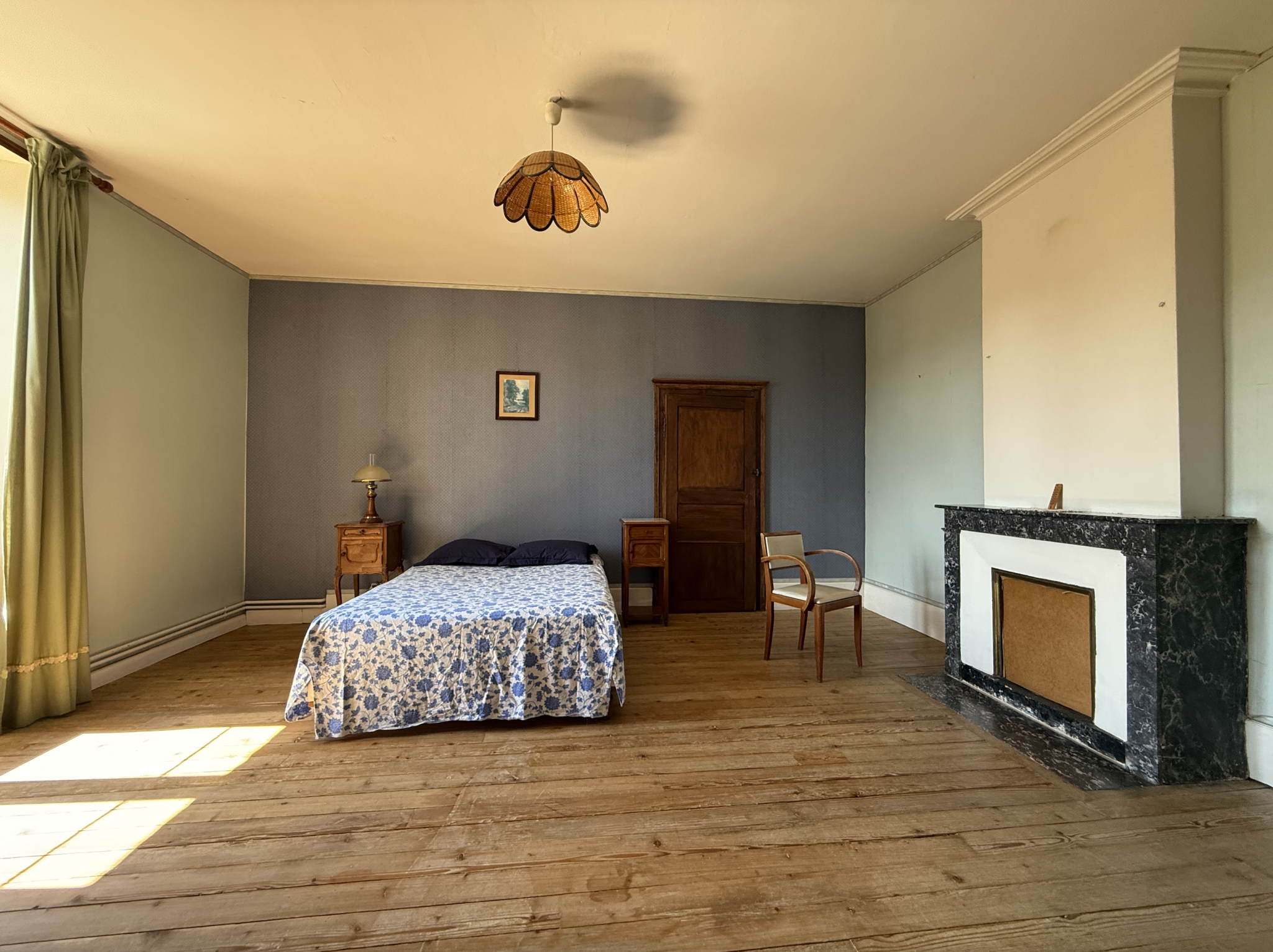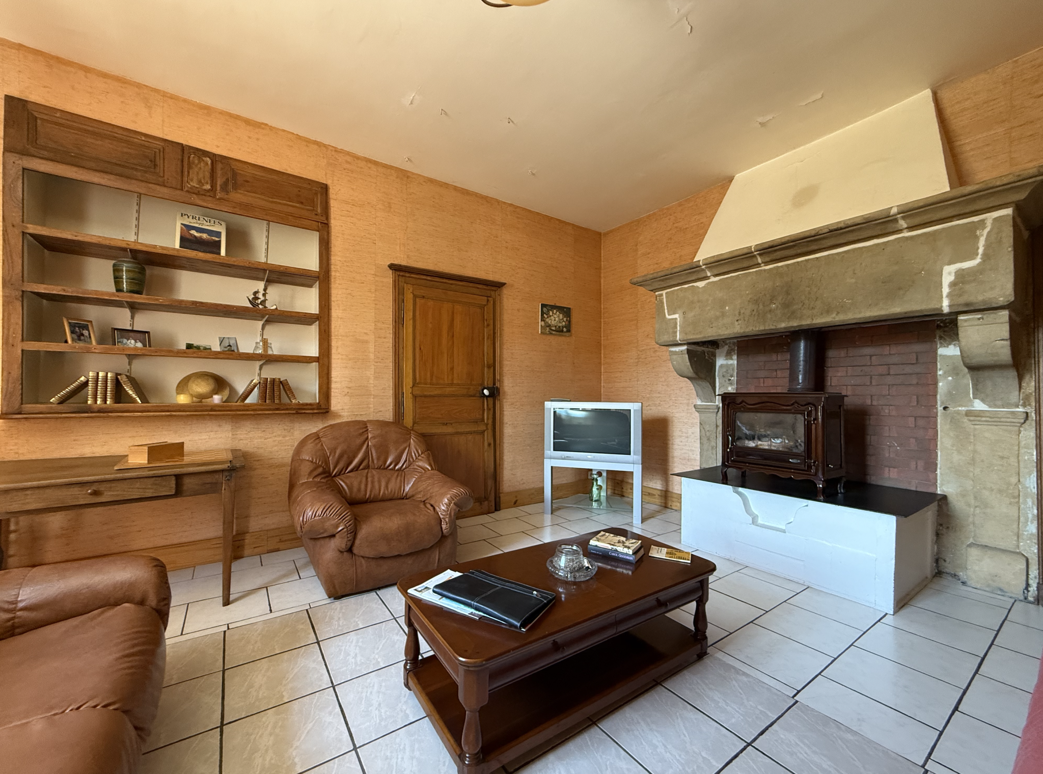 Il se compose d'une entrée, d'un salon, d'une salle à manger avec poêle à bois, d'une cuisine avec accès direct sur la terrasse et le jardin, de quatre chambres et de deux salles d'eau.