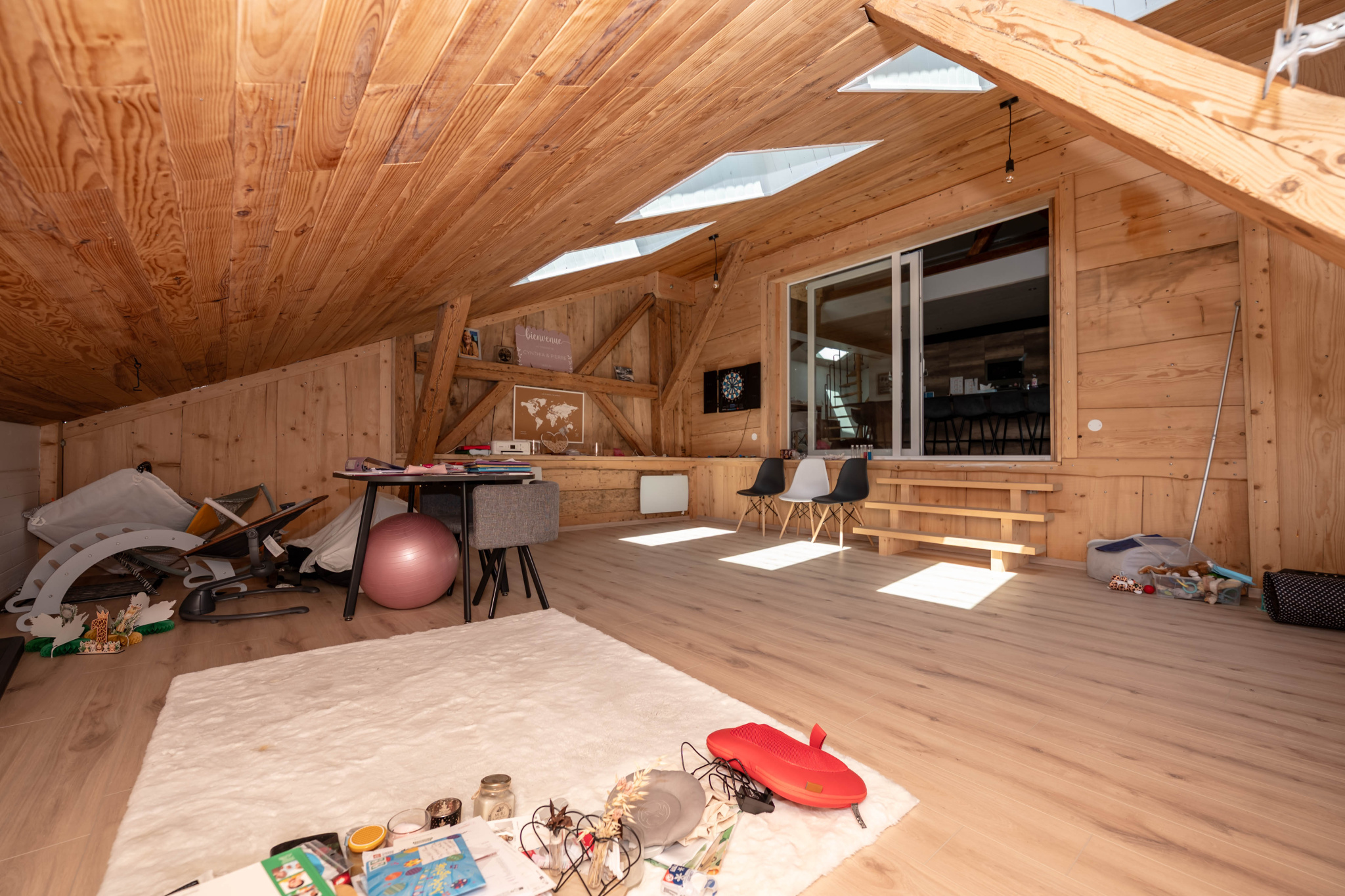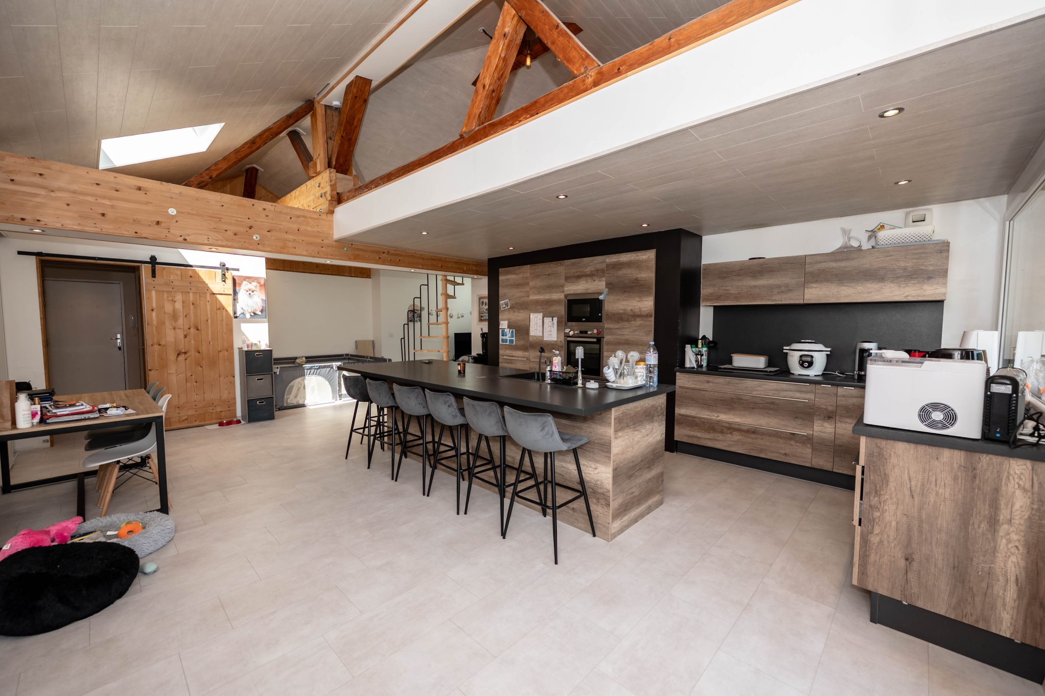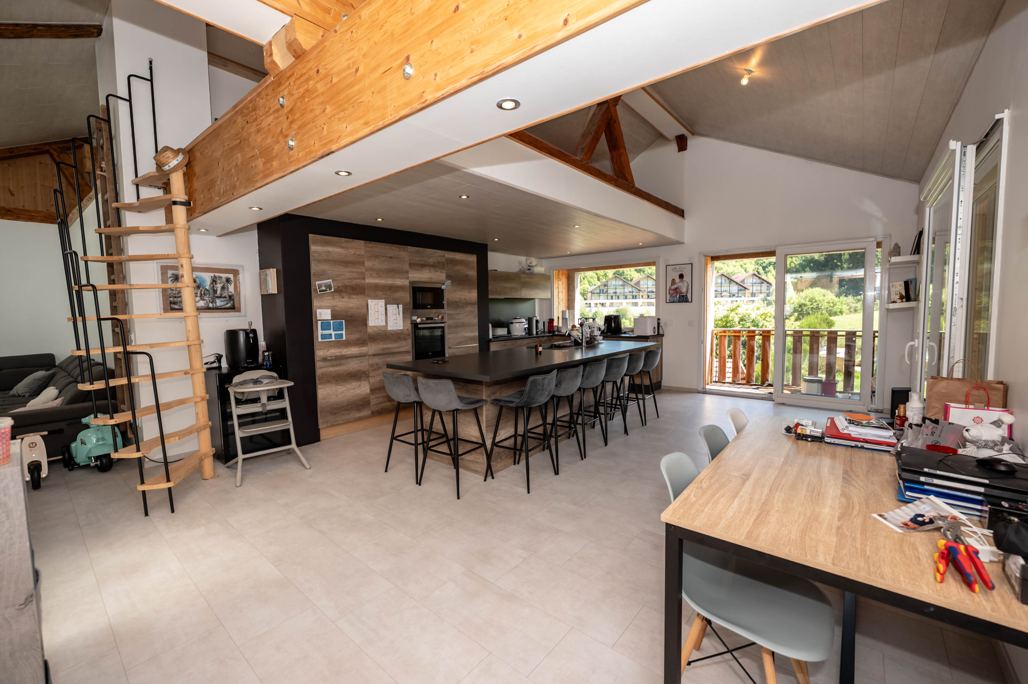 Il est composé d'une cuisine équipée ouverte sur séjour - salon, pièce très lumineuse offrant une hauteur sous plafond importante, accès balcon avec une très belle vue, mezzanine, une suite parentale avec salle d' eau, 2 chambres avec mezzanine, une salle de bain, wc, cellier, une petite salle de sport, une salle de loisirs, buanderie, 2 places de parking privatives (avec possibilité de construire un garage).