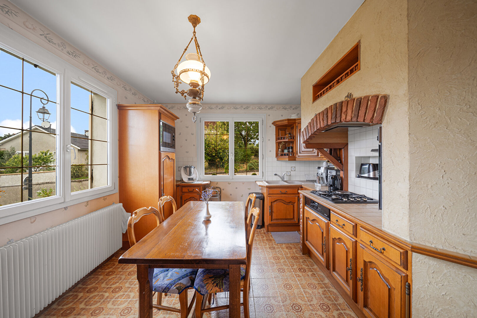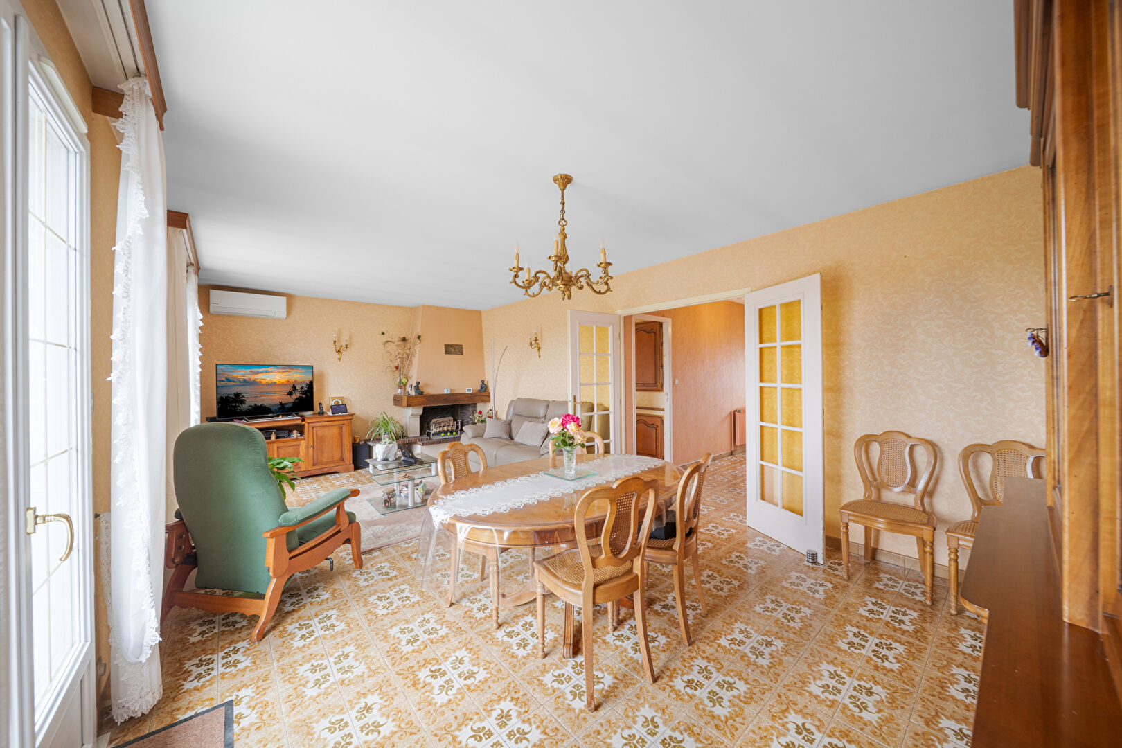 Construite en 1972, cette propriété de première main offre un espace de vie confortable grâce à un beau salon-séjour climatisé doté d'une cheminée, une cuisine équipée indépendante, une salle de douche moderne et 3 chambres avec placards.