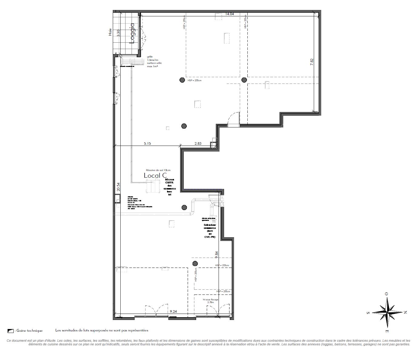 Le programme prévoit deux locaux en pied d'immeuble le long de la rue Gantillon : le local B de 97 m² et le local C de 250 m², qui peut être divisé en deux locaux de 135 m² et 115 m² selon les besoins.