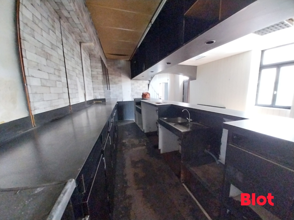 - Au rez-de-chaussée : un hall d'entrée suivi d'une grande pièce utilisée auparavant comme bar et cuisine.