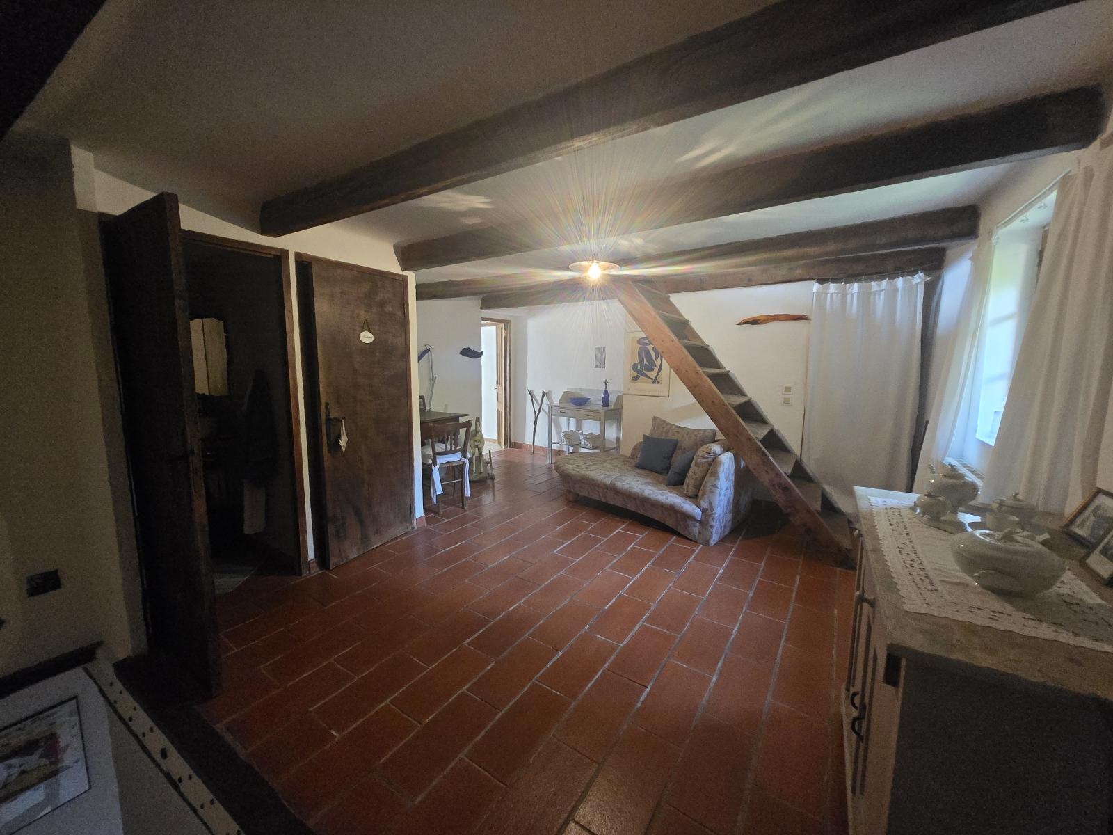 - Le troisième et dernier étage est constitué d'une immense chambre équipée d'un wc et d'un lavabo avec la possibilité de créer une douche italienne, les arrivées et tuyaux d'eau étant déjà là. Cette pièce offrant une vue dégagée sur quelques toits du hameau mais aussi sur les collines environnantes et sur un accès direct au gardon idéal pour une baignade ou aller se reposer.