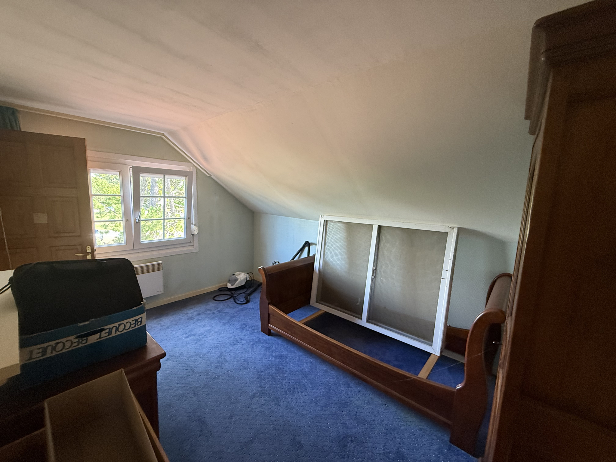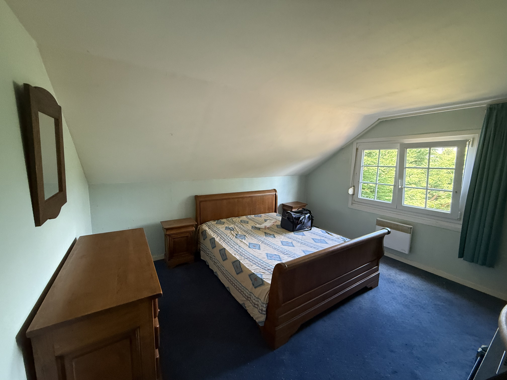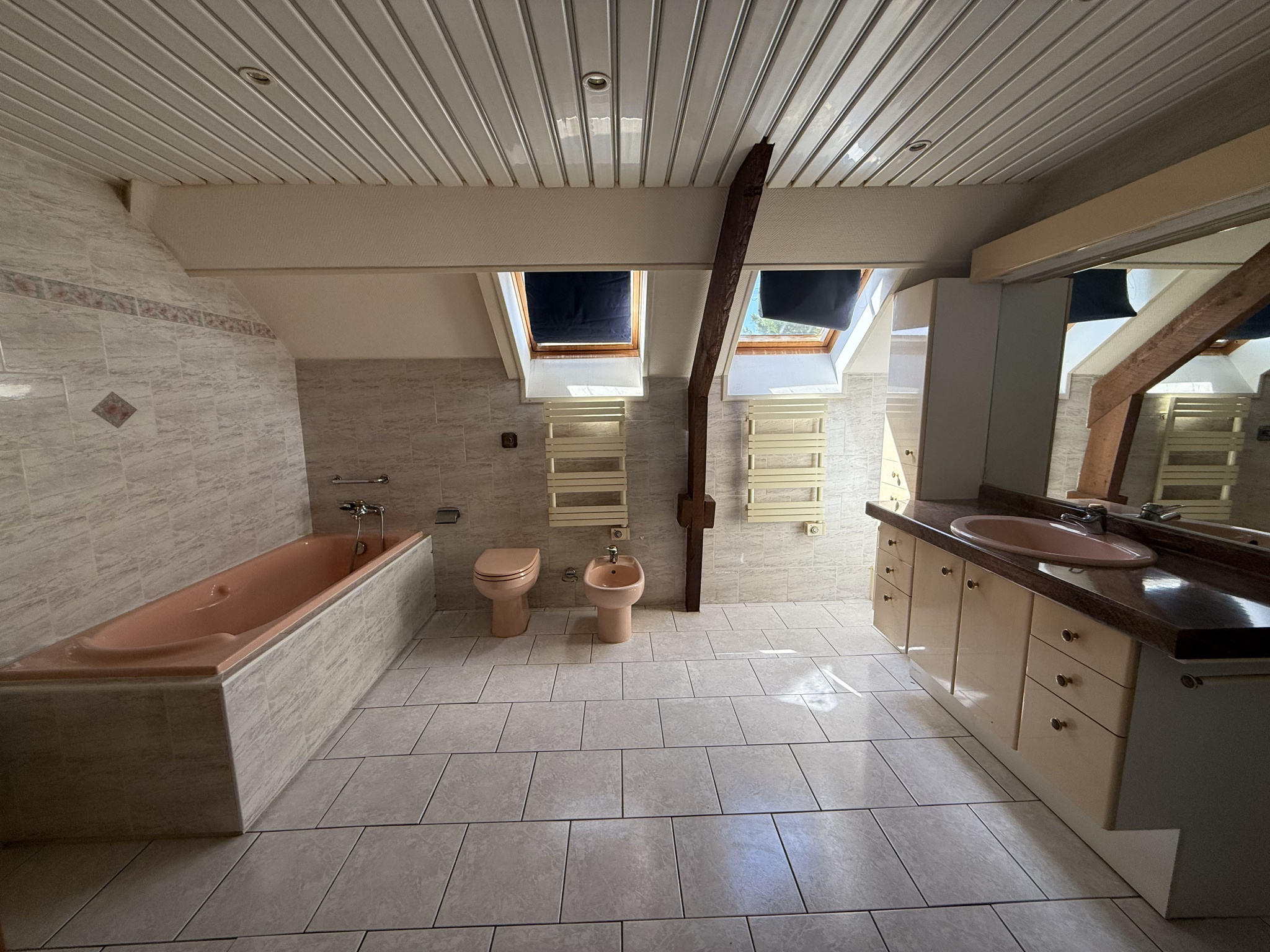A l'étage, un palier desservant 2 grandes chambres, une grande salle de bains et deux greniers.