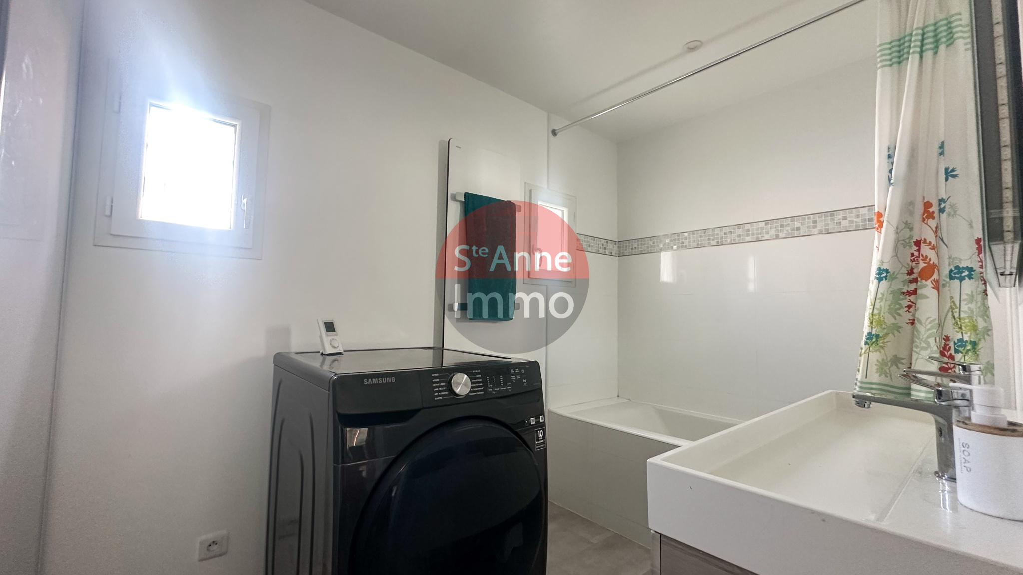 une entrée desservant un salon/séjour, une salle à manger, une cuisine équipée, aménagée le tout ouvert, une suite parentale, trois chambres, une salle de bain, un WC séparé