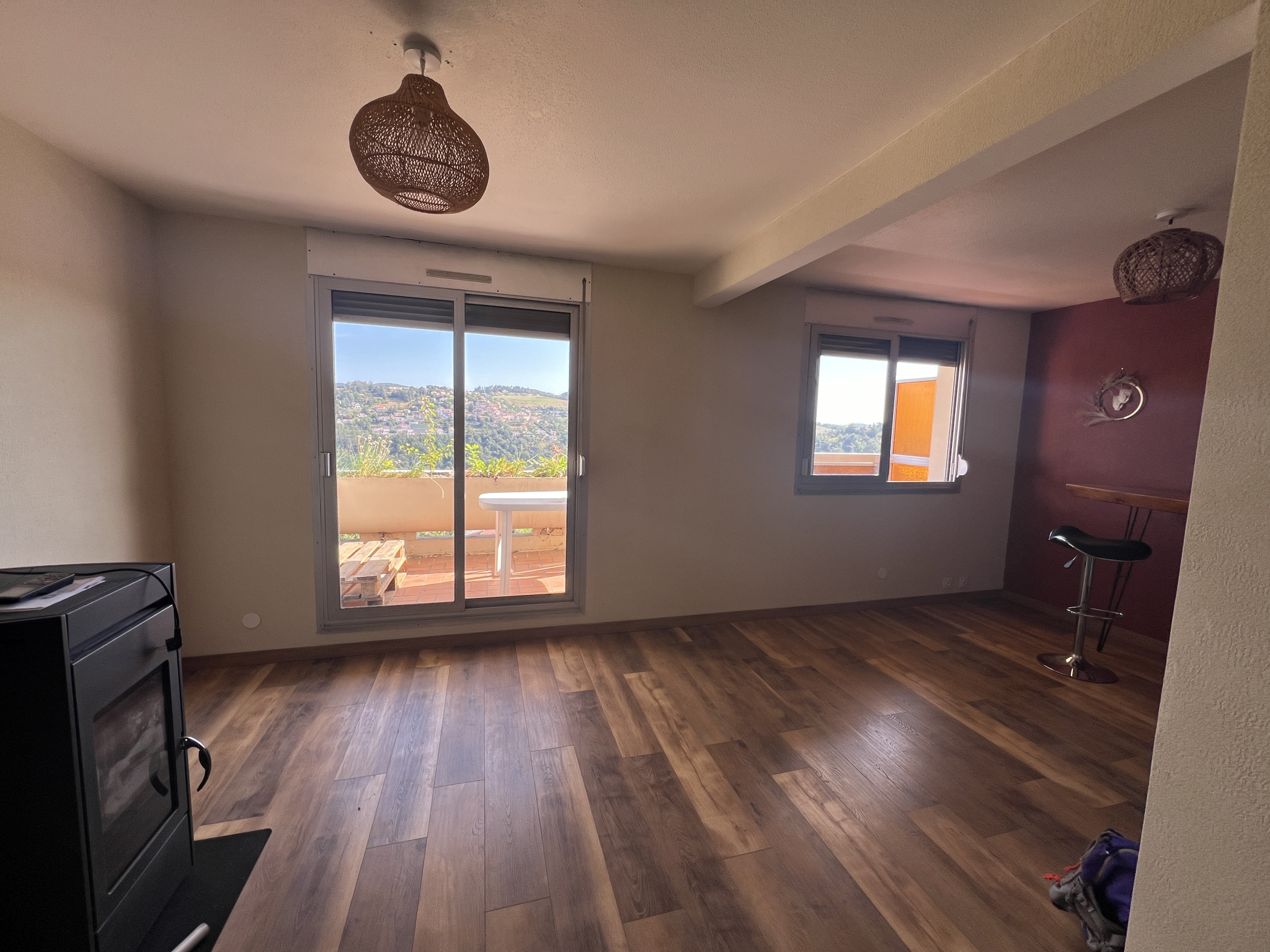 Saint-Priest-En-Jarez Découvrez ce très bel appartement, de 87m2 entièrement rénové, idéalement situé dans un quartier calme et recherché. Vous serez immédiatement séduit par sa belle vue dégagée offrant un cadre de vie agréable et lumineux Il se compose de deux chambres, une cuisine équipée et fonctionnelle, un séjour lumineux avec un espace de vie convivial donnant sur une terrasse profitable Une salle d'eau conçue avec gout Les extras : un garage et une cave spacieuse Il est situé au 3ème et dernier étage Ce bien est soumis au régime de la copropriété, les honoraires sont à la charge vendeur Les risques auxquels ce bien est exposé sont disponibles sur le site géorisque : www.georisques.gouv.fr AGENCE PLANET'IMMO 6 route de L'Etrat 42270 Saint-Priest-Jarez CATHERINE LAURENT AGENT COMMERCIAL RCS 491 892 360