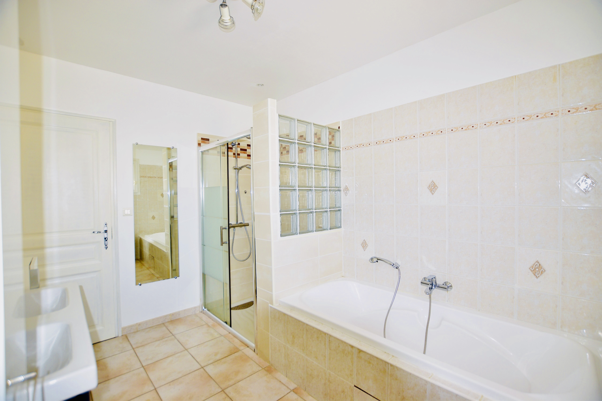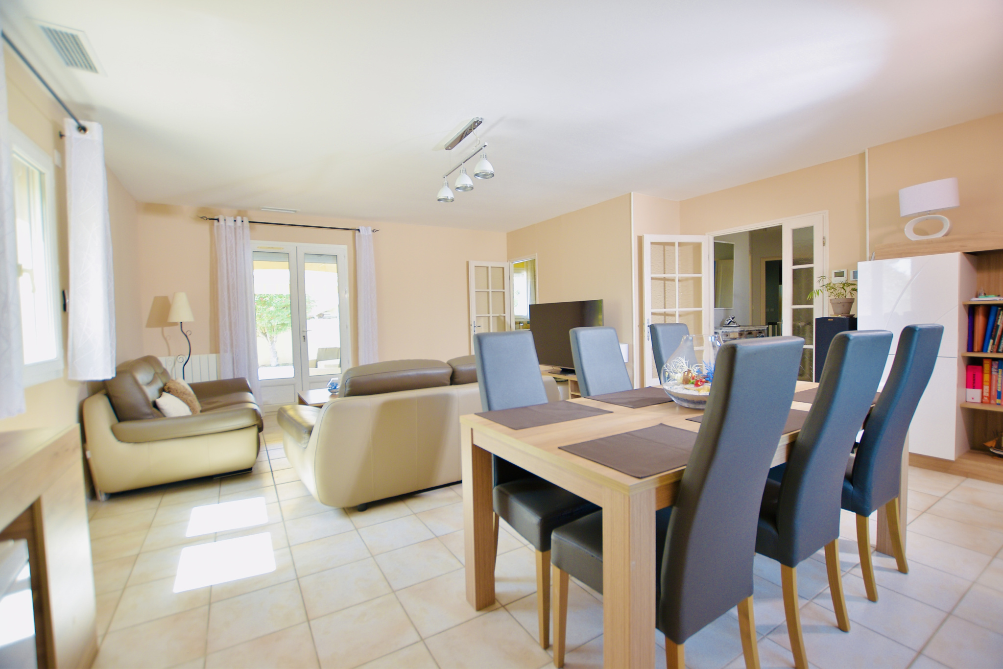 Une villa spacieuse et confortable de 168 m2 Dès l'entrée, vous serez séduit par cette villa de plain-pied, offrant des espaces lumineux et ouverts sur l'extérieur. Elle se compose de : - Une entrée avec placards - Une cuisine équipée, ouverte sur un grand séjour lumineux, donnant sur une terrasse couverte avec vue sur la piscine - Un espace nuit comprenant 4 belles chambres avec placards intégrés - Une grande salle de bain/douche et un WC indépendant - Un garage isolé et aménagé en suite indépendante de 30 m2 avec salle d'eau et WC