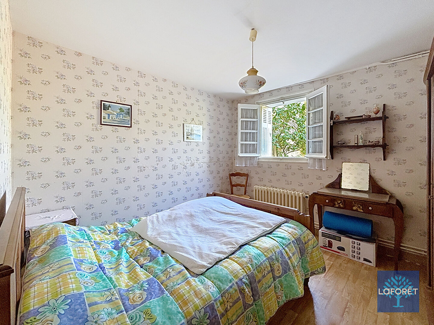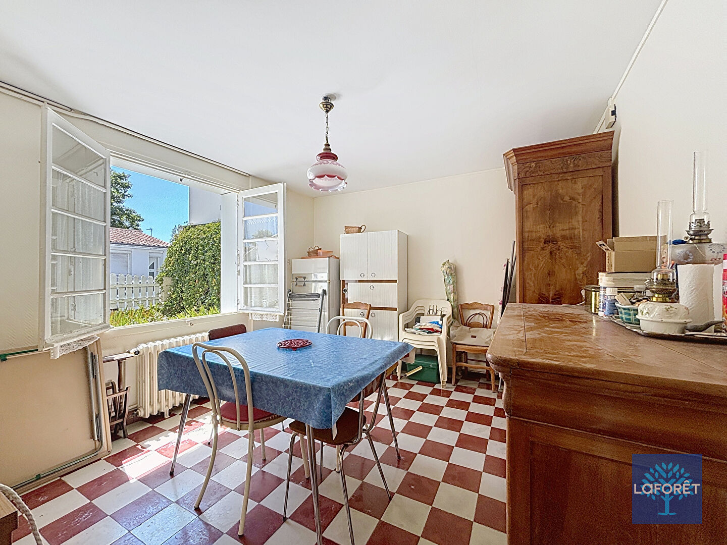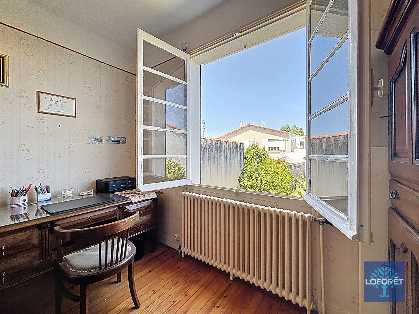 Le jardin est spacieux, avec des arbres fruitiers. La parcelle est traversante et potentiellement divisible.