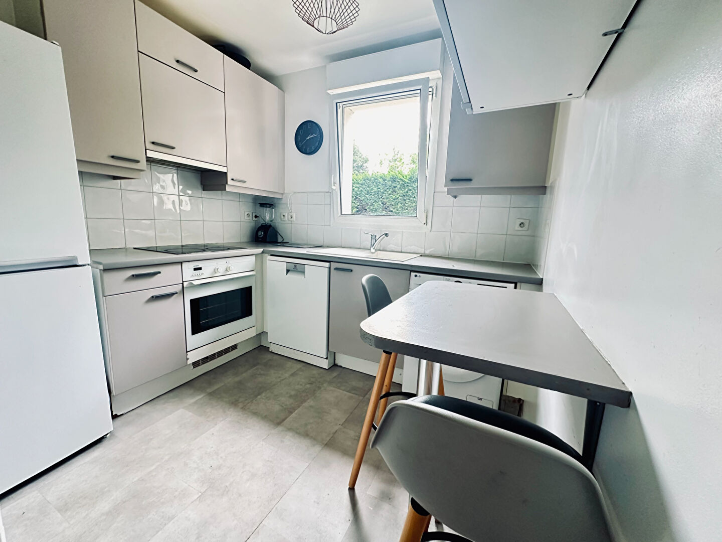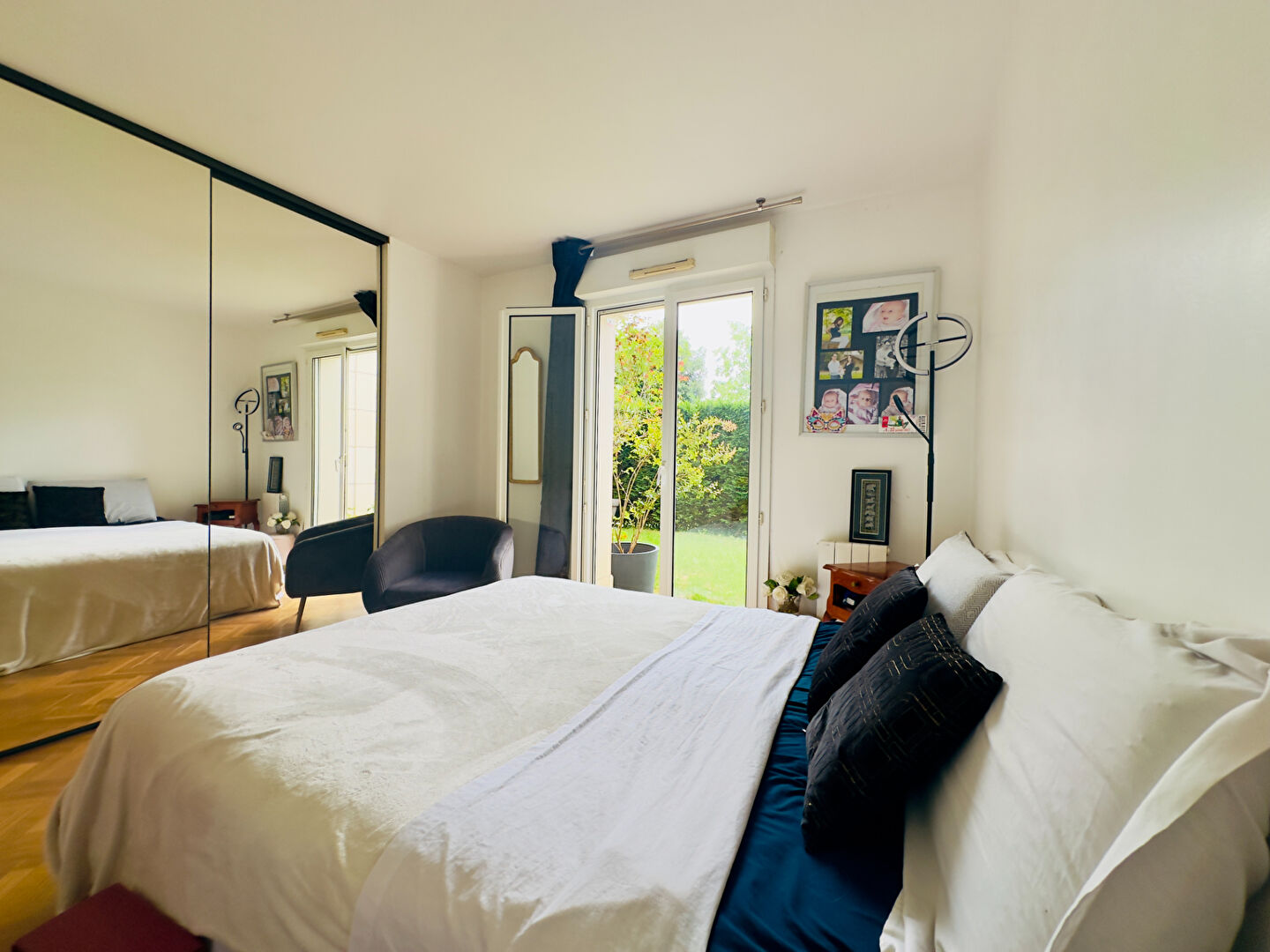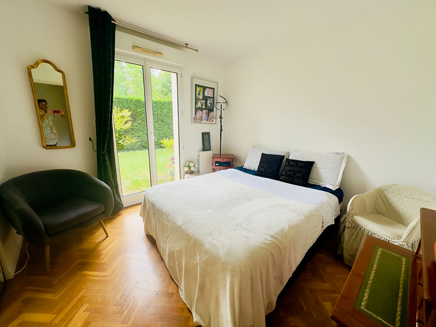 Cet appartement comprend une entrée, un séjour avec un accès à une terrasse de 12 m² ainsi qu'un jardin privatif de 70m² exposé SUD/ OUEST sans vis à vis, une cuisine aménagée, deux chambres avec grands placards, une salle de bains et des toilettes séparées.