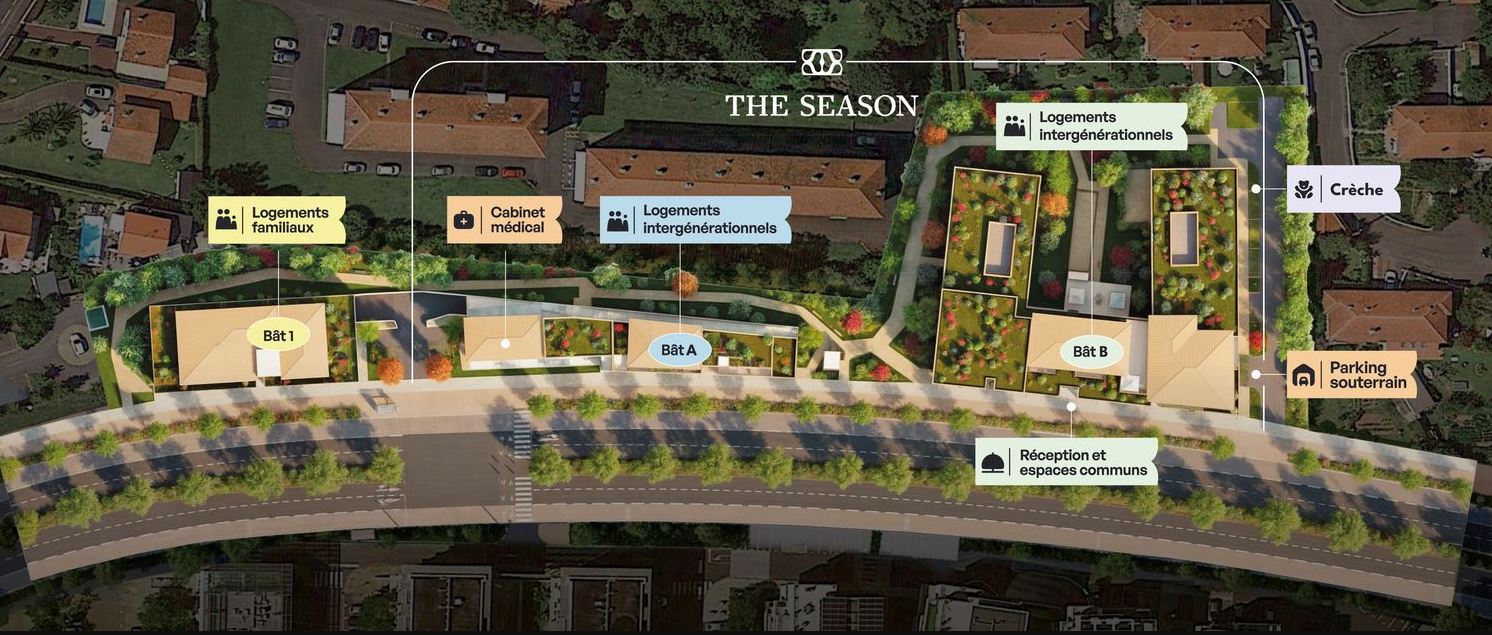 The Season est un concept portant sur une résidence intergénération- nelle connectée, de 152 logements privatifs du studio au 3 pièces, avec services de qualité partagés et à la carte, au sein de la résidence.