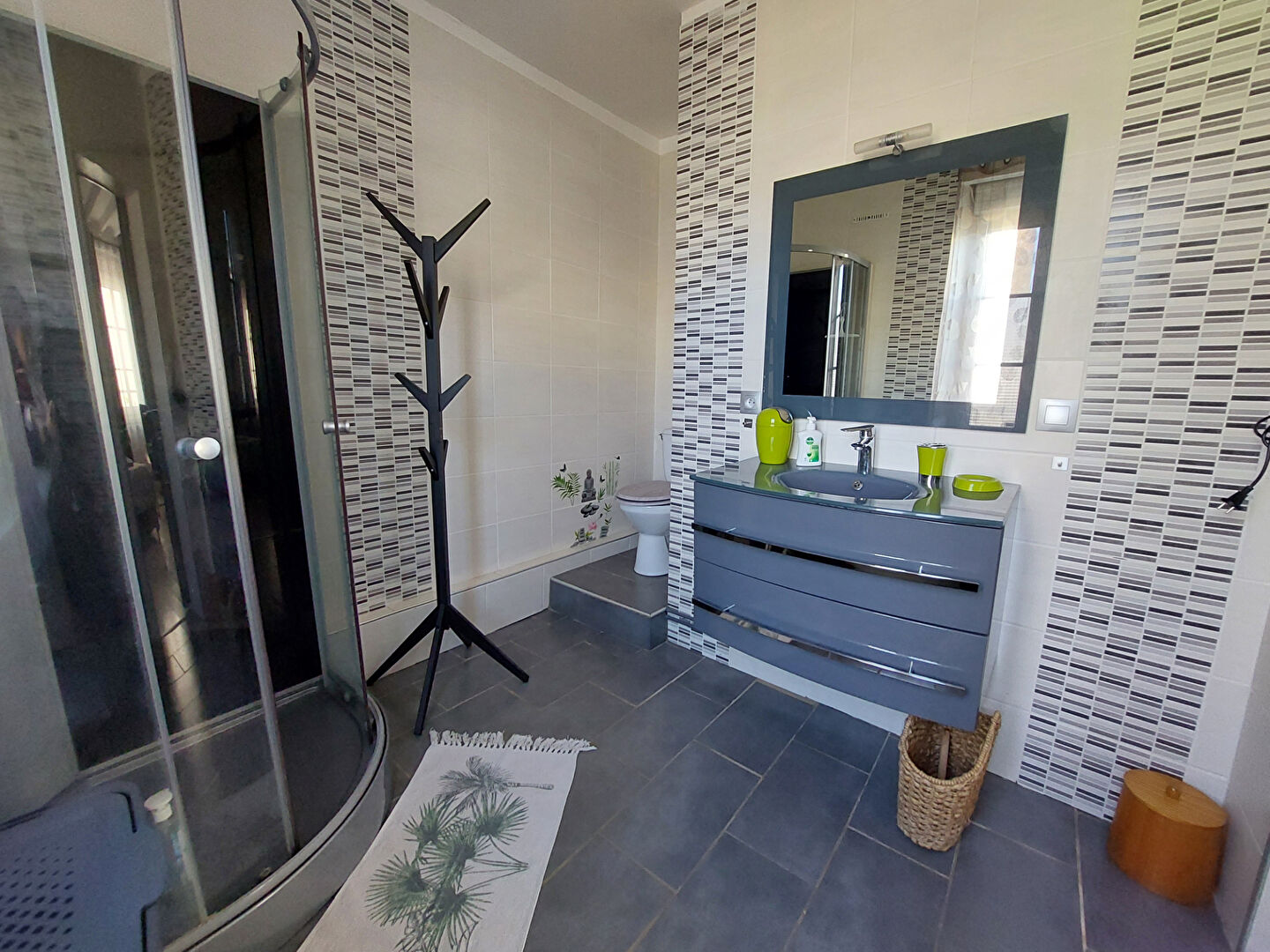 La maison principale offre une vaste pièce de vie lumineuse avec un plafond cathédrale une cuisine équipée et poêle à bois. Une véranda exposée SUD donnant sur la piscine chauffée, un bureau pouvant être une chambre, une SDD avec WC, et une suite parentale avec sa SDD. À l'étage, une mezzanine vue sur le séjour, un couloir desservant, deux autres chambres, une deuxième suite parentale avec salle de bain et un bureau.