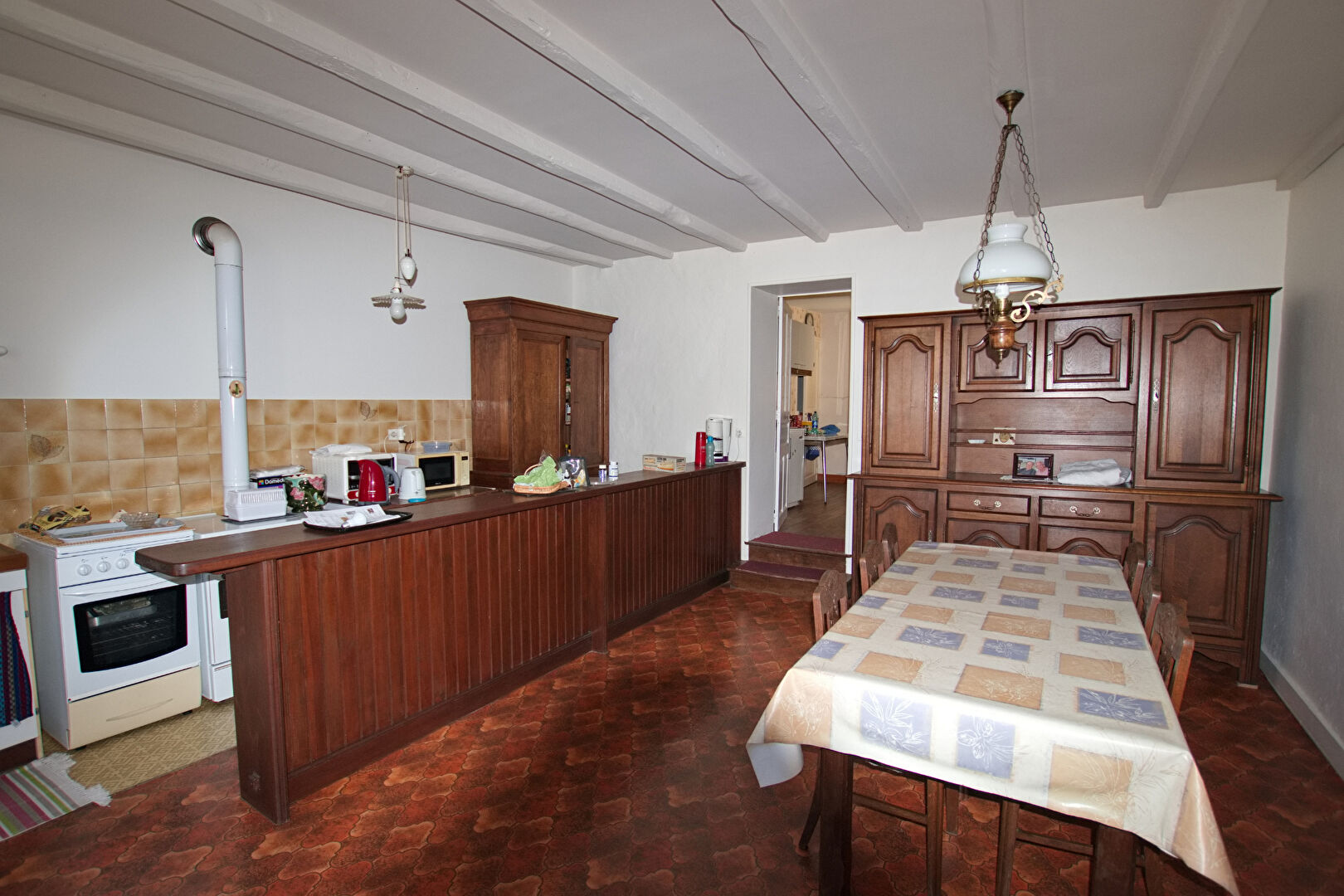 Maison comprenant : une cuisine, salon séjour avec insert , arrière cuisine buanderie, salle de bains, wc. A l étage : palier, deux chambres, grenier. Cour et jardin , citerne , atelier, garage, cave, dépendances. Autre jardin non attenant .