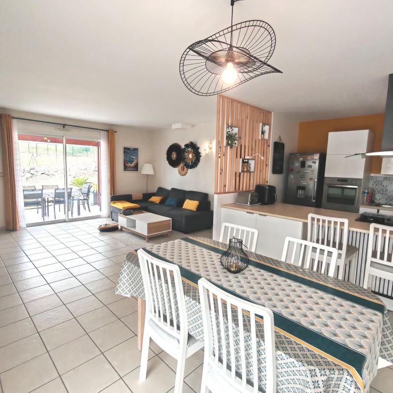 Située à 5 minutes de Mont de Marsan, venez découvrir cette maison contemporaine de plain-pied T5 tout confort comprenant trois chambres chacune doté d'un dressing et un bureau. Elle dispose également d'un garage attenant. Le tout implanté sur un terrain de plus de 1300m² Ses atouts : climatisation réversible, poêle a granulé, un séjour lumineux, un cellier, aucun travaux à prévoir!!!